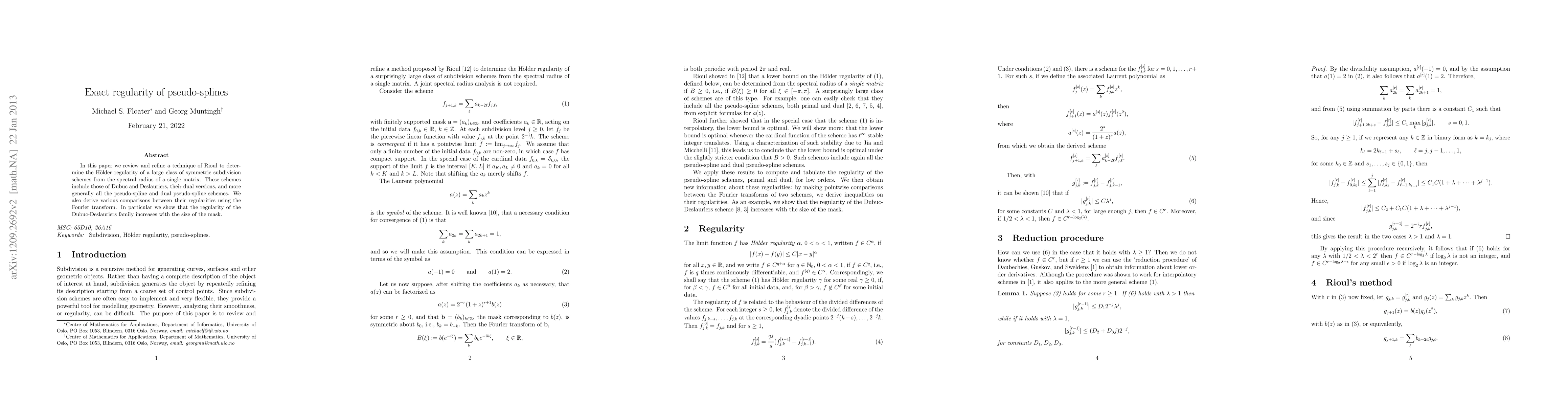 This paper refines Rioul's technique to determine the H\"older regularity of pseudo-spline schemes through matrix spectral radius analysis, comparing their regularity with Fourier transform insights, and showing that regularity in Dubuc-Deslauriers family increases with mask size.