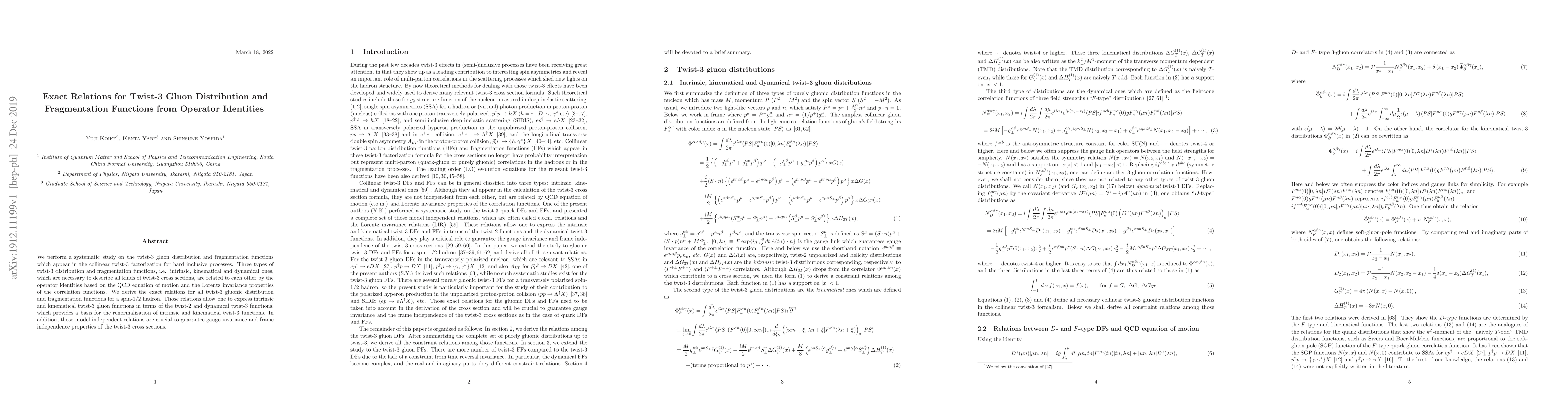 Researchers derive exact relations for twist-3 gluon distribution and fragmentation functions, enabling a model-independent description of hard inclusive processes and ensuring gauge invariance and frame independence.