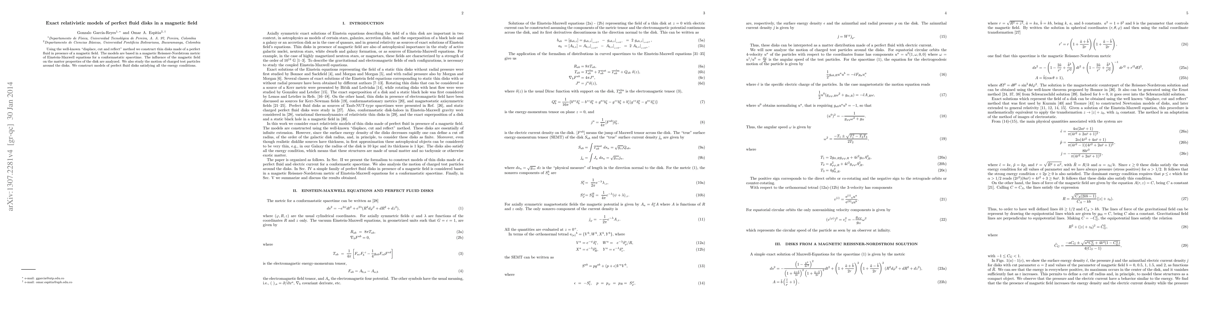 This paper constructs exact relativistic models of thin perfect fluid disks influenced by a magnetic field using the "displace, cut and reflect" method, based on the magnetic Reissner-Nordstrom metric. It analyzes the effect of the magnetic field on disk matter properties and studies the motion of charged test particles around these disks.