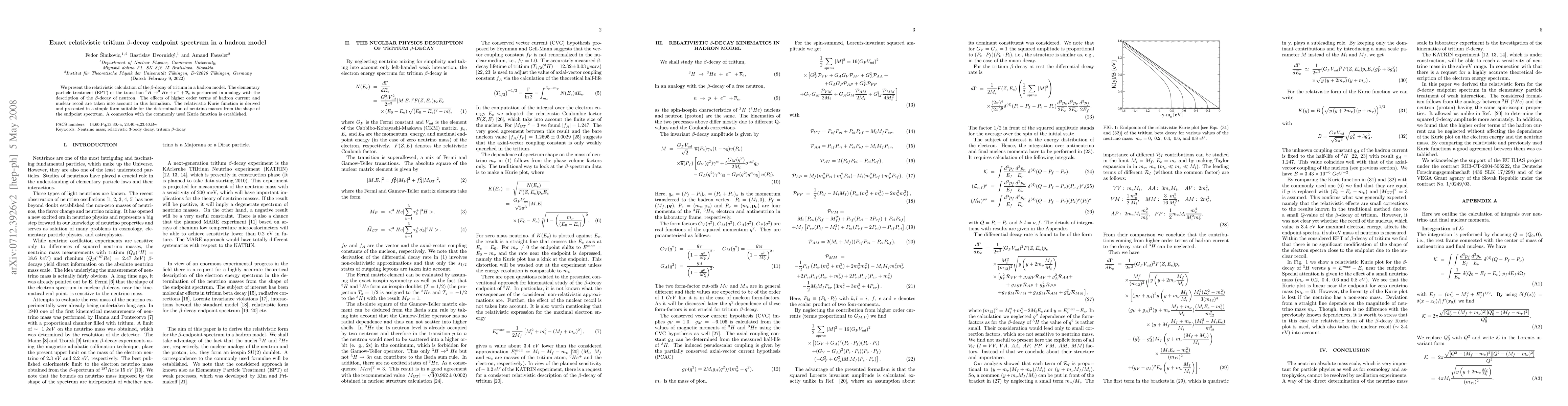 This paper presents a relativistic calculation of tritium beta-decay within a hadron model, incorporating higher-order terms and nuclear recoil effects. The derived relativistic Kurie function facilitates the determination of neutrino masses from the endpoint spectrum shape.