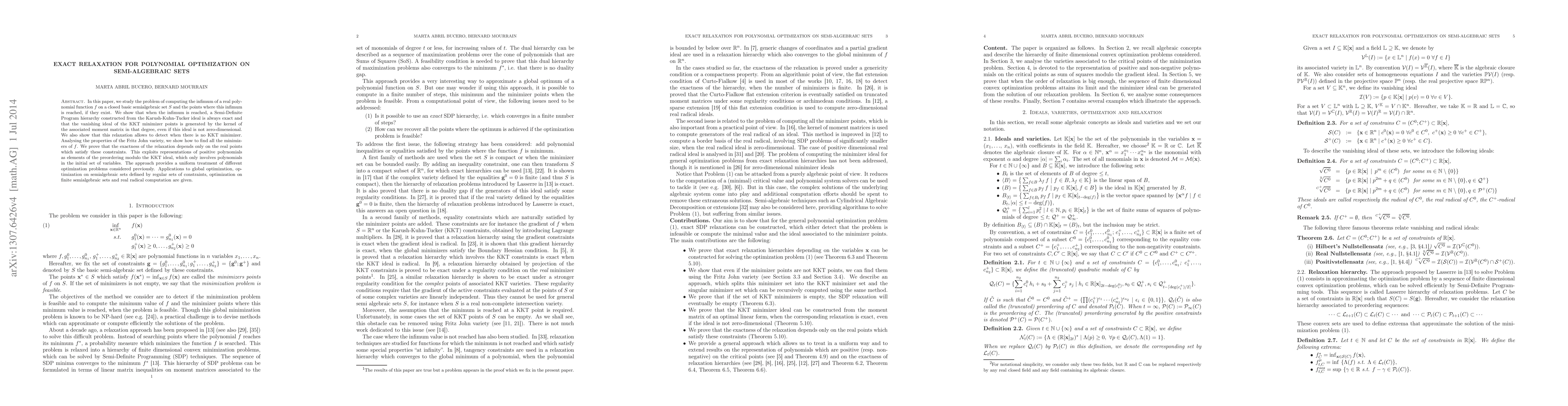 Researchers develop a method for solving polynomial optimization problems on semi-algebraic sets using relaxation hierarchies. They find that the relaxation hierarchy can detect when there is no KKT minimizer and that exactness depends only on real points satisfying constraints, with applications in global optimization and more.