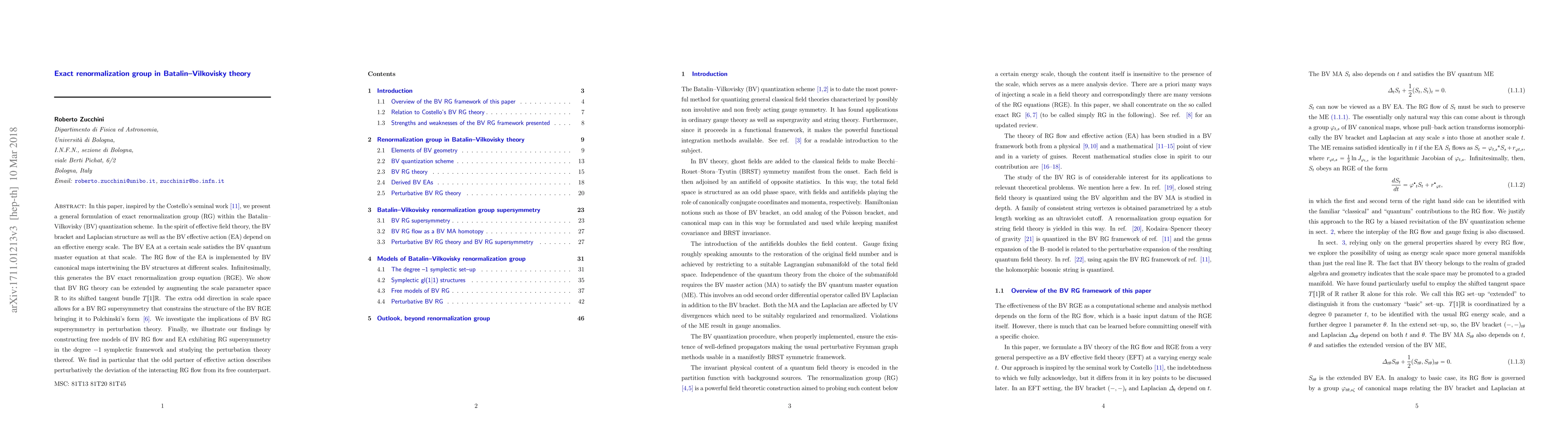 In this paper, inspired by the Costello's seminal work, we present a general formulation of exact renormalization group (RG) within the Batalin-Vilkovisky (BV) quantization scheme. In the spirit of effective field theory, the BV bracket and Laplacian structure as well as the BV effective action (EA) depend on an effective energy scale. The BV EA at a certain scale satisfies the BV quantum master equation at that scale. The RG flow of the EA is implemented by BV canonical maps intertwining the BV structures at different scales. Infinitesimally, this generates the BV exact renormalization group equation (RGE). We show that BV RG theory can be extended by augmenting the scale parameter space R to its shifted tangent bundle T[1]R. The extra odd direction in scale space allows for a BV RG supersymmetry that constrains the structure of the BV RGE bringing it to Polchinski's form. We investigate the implications of BV RG supersymmetry in perturbation theory. Finally, we illustrate our findings by constructing free models of BV RG flow and EA exhibiting RG supersymmetry in the degree -1 symplectic framework and studying the perturbation theory thereof. We find in particular that the odd partner of effective action describes perturbatively the deviation of the interacting RG flow from its free counterpart.