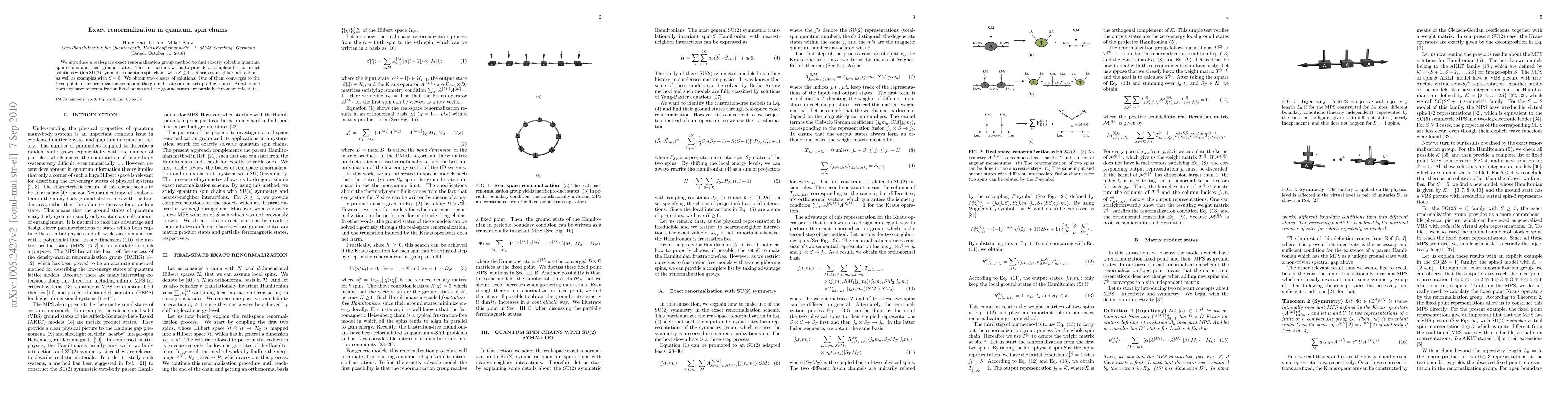 This paper presents an exact renormalization group method to identify exactly solvable quantum spin chains and their ground states, providing a complete list of solutions for SU(2) symmetric chains with spin $S\leq 4$ and nearest-neighbor interactions, along with examples for $S=5$. The study reveals two solution classes: one converging to renormalization fixed points with matrix product state ground states, and another with partially ferromagnetic states lacking renormalization fixed points.