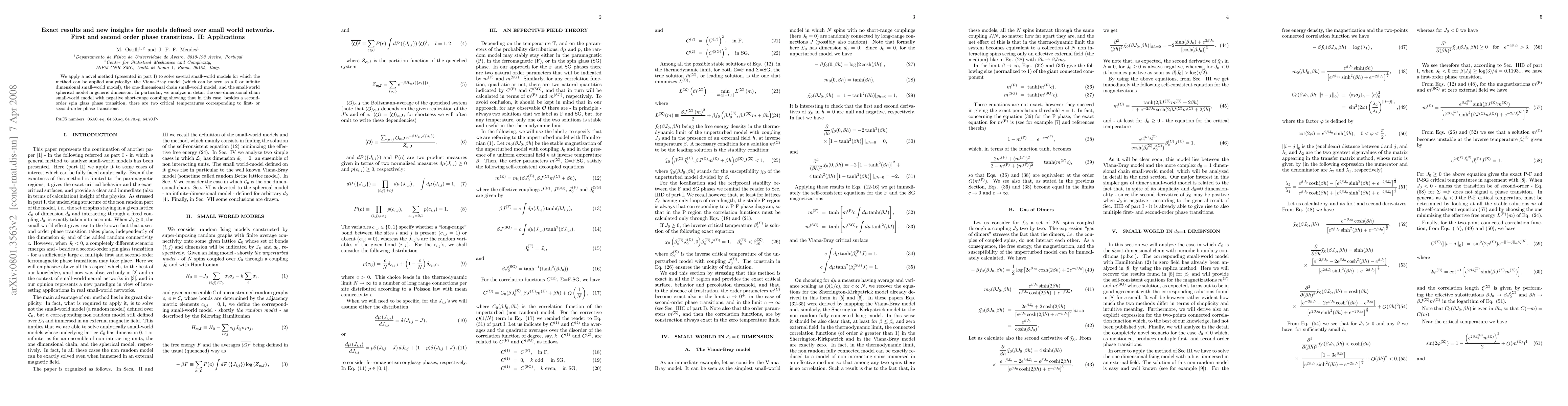 We apply a novel method (presented in part I) to solve several small-world models for which the method can be applied analytically: the Viana-Bray model (which can be seen as a 0 or infinite dimensional small-world model), the one-dimensional chain small-world model, and the small-world spherical model in generic dimension. In particular, we analyze in detail the one-dimensional chain small-world model with negative short-range coupling showing that in this case, besides a second-order spin glass phase transition, there are two critical temperatures corresponding to first- or second-order phase transitions.