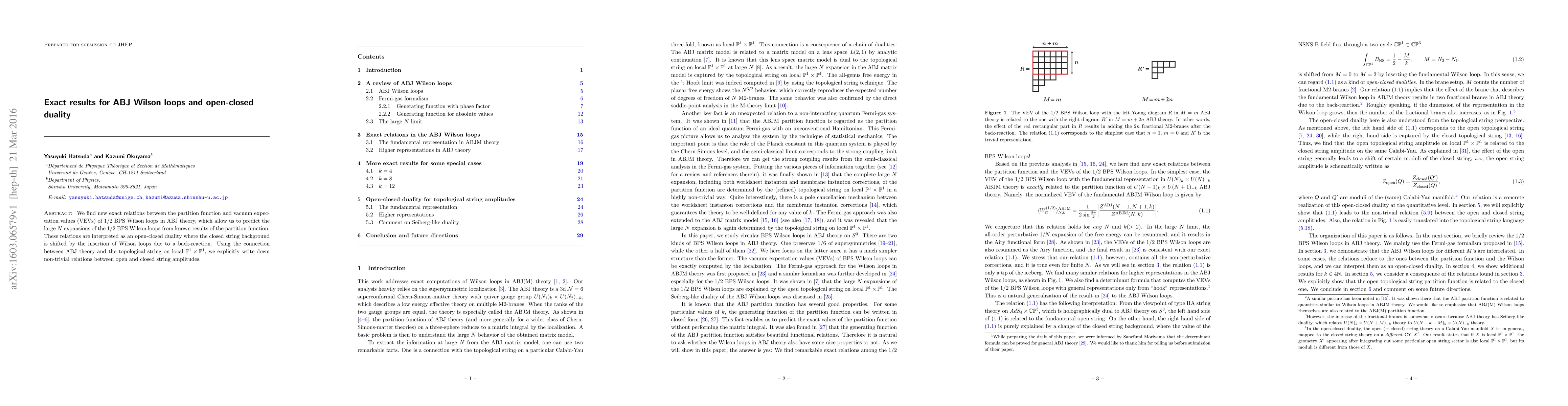 The paper discovers exact relations between the partition function and VEVs of 1/2 BPS Wilson loops in ABJ theory, enabling the prediction of loop expansions via known partition function results. These relations exhibit an open-closed duality where closed string backgrounds are shifted by Wilson loop insertions, leading to non-trivial relations between open and closed string amplitudes.