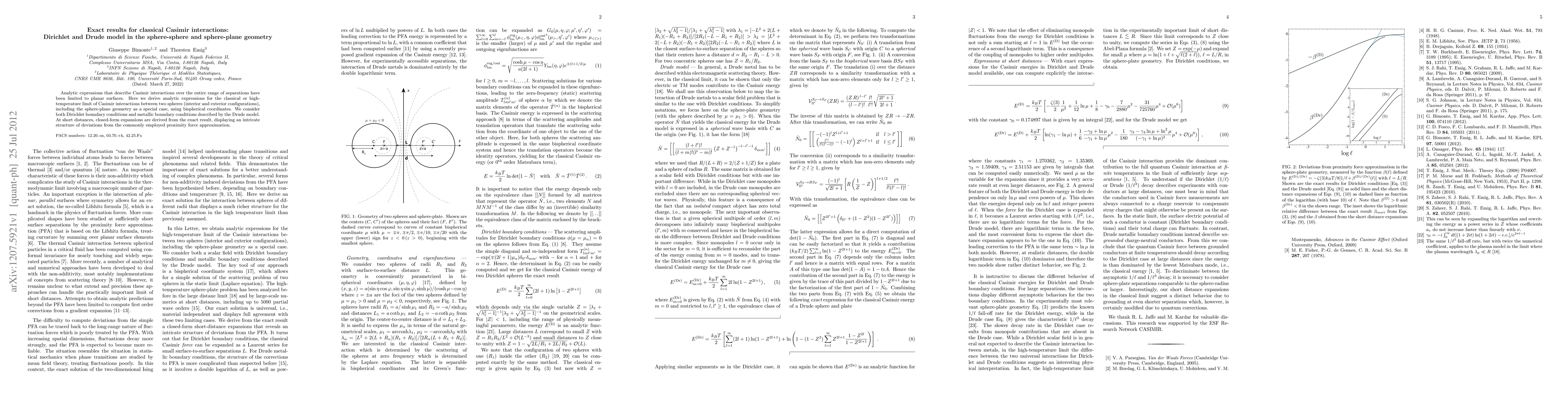 Analytic expressions that describe Casimir interactions over the entire range of separations have been limited to planar surfaces. Here we derive analytic expressions for the classical or high-temperature limit of Casimir interactions between two spheres (interior and exterior configurations), including the sphere-plane geometry as a special case, using bispherical coordinates. We consider both Dirichlet boundary conditions and metallic boundary conditions described by the Drude model. At short distances, closed-form expansions are derived from the exact result, displaying an intricate structure of deviations from the commonly employed proximity force approximation.