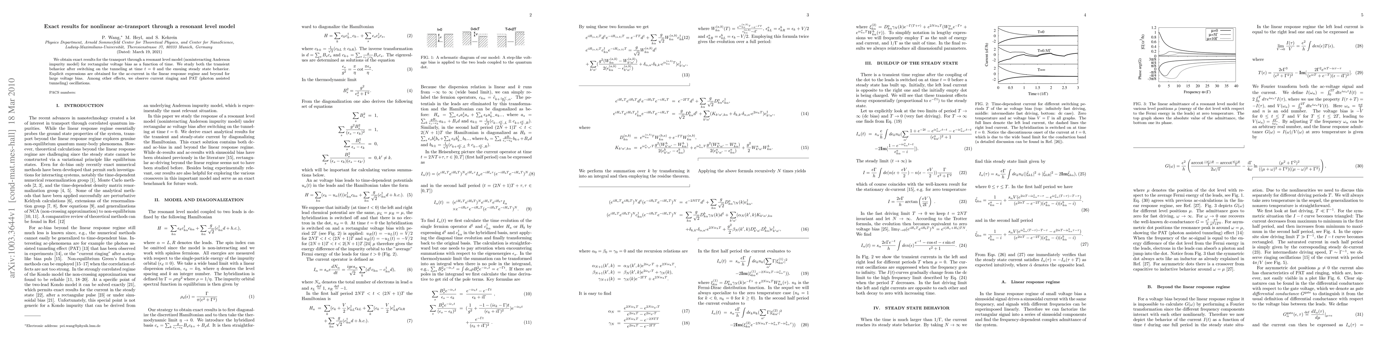 This paper provides exact results for ac-transport through a resonant level model, revealing transient and steady-state behaviors, including current ringing and photon-assisted tunneling oscillations under large voltage biases. Explicit expressions for ac-current in the linear response regime and beyond are derived.