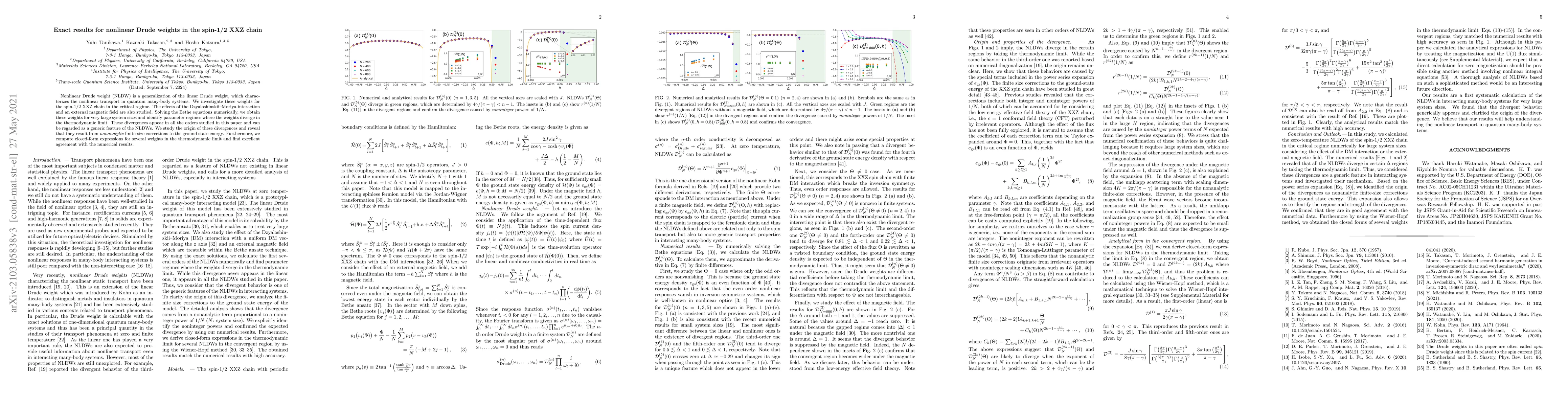 Researchers studied nonlinear Drude weights in a critical spin-1/2 XXZ chain, finding divergences that result from nonanalytic finite-size corrections to the ground state energy, with closed-form expressions for several weights showing excellent agreement with numerical results.