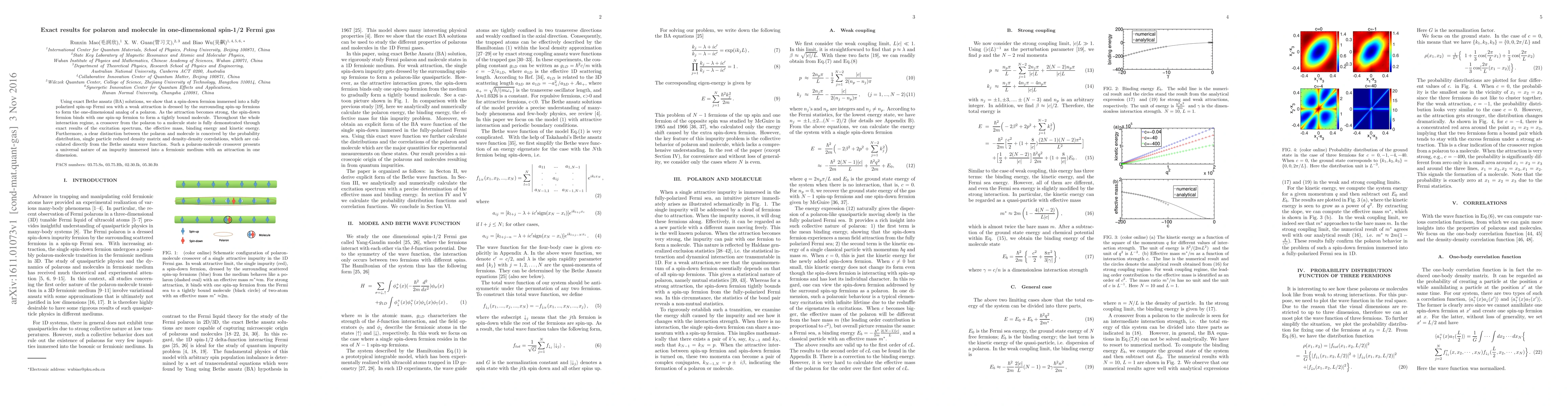 This paper uses exact Bethe ansatz solutions to demonstrate the crossover from a polaron to a molecule in a one-dimensional spin-1/2 Fermi gas, showing how a spin-down fermion interacts with a polarized spin-up Fermi sea, and detailing the transition through various physical properties. The study reveals a universal behavior of impurity-medium interactions in one-dimensional attractive systems.