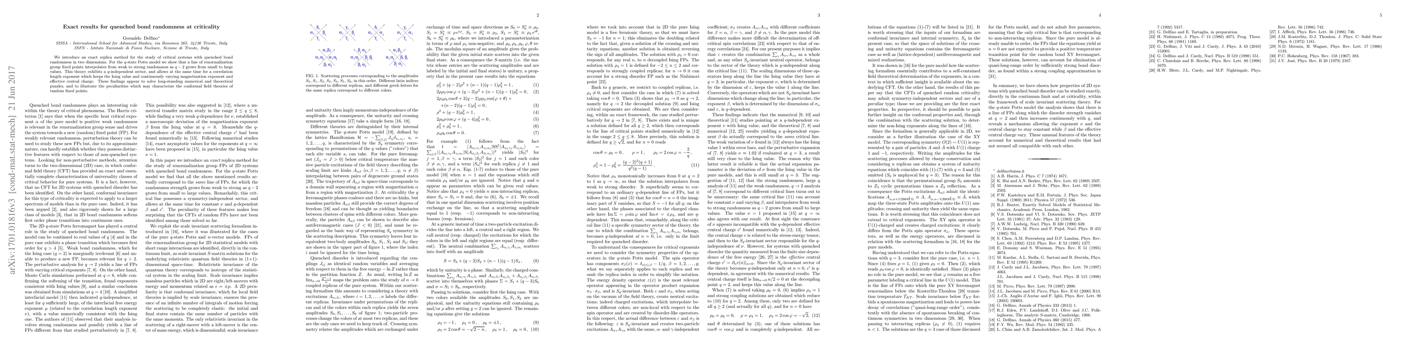 We introduce an exact replica method for the study of critical systems with quenched bond randomness in two dimensions. For the $q$-state Potts model we show that a line of renormalization group fixed points interpolates from weak to strong randomness as $q-2$ grows from small to large values. This theory exhibits a $q$-independent sector, and allows at the same time for a correlation length exponent which keeps the Ising value and continuously varying magnetization exponent and effective central charge. These findings appear to solve long standing numerical and theoretical puzzles, and to illustrate the peculiarities which may characterize the conformal field theories of random fixed points.