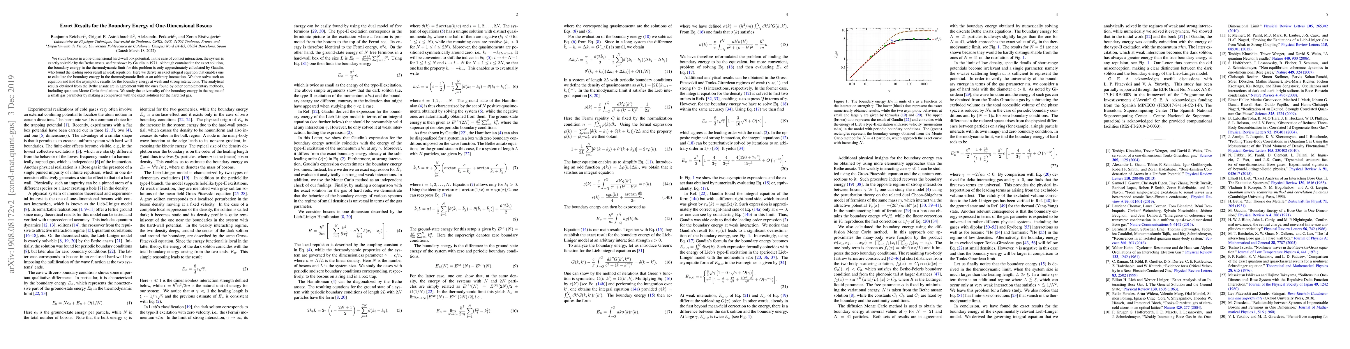 This paper derives an exact integral equation to calculate the boundary energy of one-dimensional bosons in a hard-wall box, solving it to find asymptotic results for both weak and strong interactions. The analytical results align with complementary methods and demonstrate the universality of boundary energy in small gas parameters.