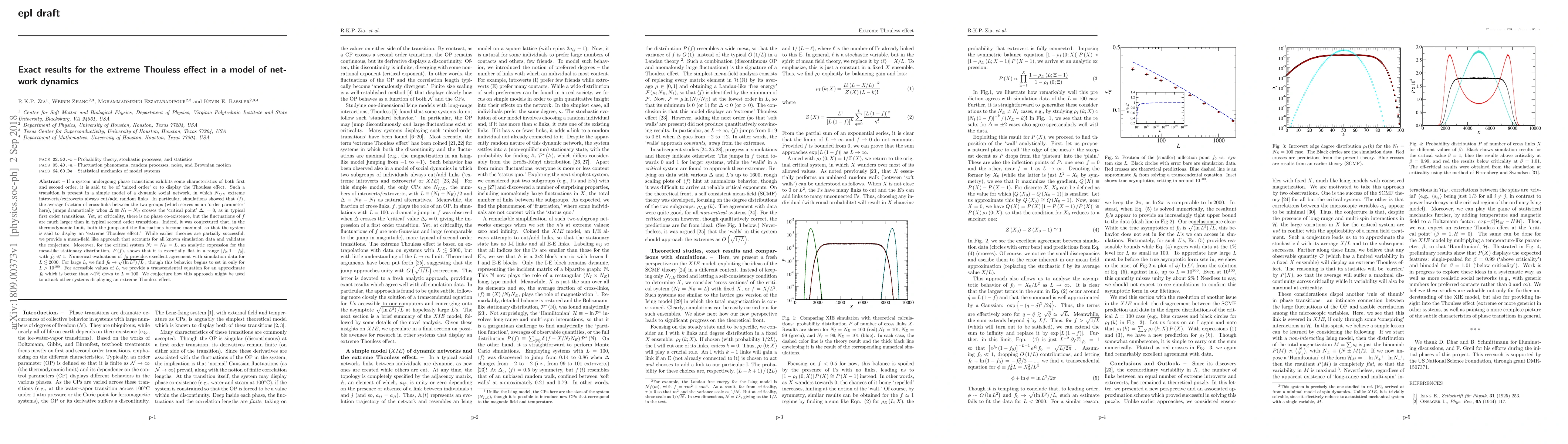 If a system undergoing phase transitions exhibits some characteristics of both first and second order, it is said to be of 'mixed order' or to display the Thouless effect. Such a transition is present in a simple model of a dynamic social network, in which $N_{I/E}$ extreme introverts/extroverts always cut/add random links. In particular, simulations showed that $\left\langle f\right\rangle $, the average fraction of cross-links between the two groups (which serves as an 'order parameter' here), jumps dramatically when $\Delta \equiv N_{I}-N_{E}$ crosses the 'critical point' $\Delta _{c}=0$, as in typical first order transitions. Yet, at criticality, there is no phase co-existence, but the fluctuations of $f$ are much larger than in typical second order transitions. Indeed, it was conjectured that, in the thermodynamic limit, both the jump and the fluctuations become maximal, so that the system is said to display an 'extreme Thouless effect.' While earlier theories are partially successful, we provide a mean-field like approach that accounts for all known simulation data and validates the conjecture. Moreover, for the critical system $N_{I}=N_{E}=L$, an analytic expression for the mesa-like stationary distribution, $P\left( f\right) $, shows that it is essentially flat in a range $\left[ f_{0},1-f_{0}\right] $, with $f_0 \ll 1$. Numerical evaluations of $f_{0}$ provides excellent agreement with simulation data for $L\lesssim 2000$. For large $L$, we find $f_{0}\rightarrow \sqrt{\left( \ln L^2 \right) /L}$ , though this behavior begins to set in only for $L>10^{100}$. For accessible values of $L$, we provide a transcendental equation for an approximate $f_{0}$ which is better than $\sim$1% down to $L=100$. We conjecture how this approach might be used to attack other systems displaying an extreme Thouless effect.