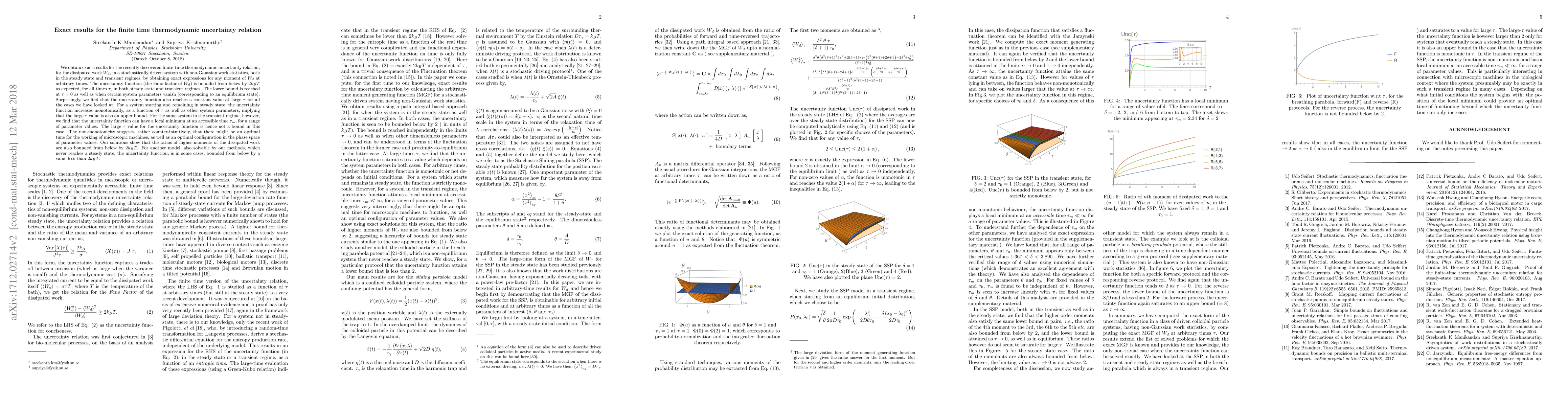 This paper provides exact results for the finite-time thermodynamic uncertainty relation in stochastically driven systems, revealing that the uncertainty function is bounded below by $2k_BT$ for all times. It finds an optimal time for the operation of microscopic machines and suggests that the uncertainty function can have a local minimum, indicating an optimal configuration in parameter space.