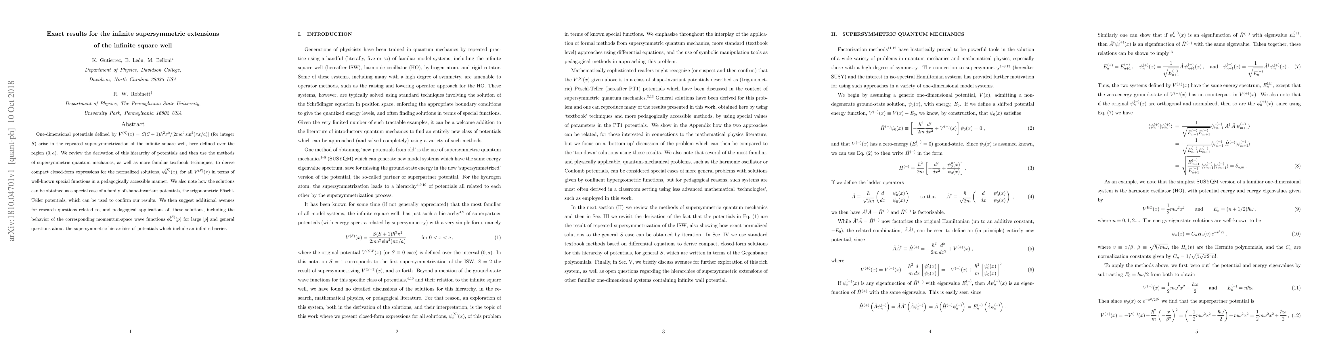 One-dimensional potentials defined by $V^{(S)}(x) =S(S+1) \hbar^2 \pi^2 /[2ma^2\sin^2(\pi x/a)]$ (for integer $S$) arise in the repeated supersymmetrization of the infinite square well, here defined over the region $(0,a)$. We review the derivation of this hierarchy of potentials and then use the methods of supersymmetric quantum mechanics, as well as more familiar textbook techniques, to derive compact closed-form expressions for the normalized solutions, $\psi_n^{(S)}(x)$, for all $V^{(S)}(x)$ in terms of well-known special functions in a pedagogically accessible manner. We also note how the solutions can be obtained as a special case of a family of shape-invariant potentials, the trigonometric P\"oschl-Teller potentials, which can be used to confirm our results. We then suggest additional avenues for research questions related to, and pedagogical applications of, these solutions, including the behavior of the corresponding momentum-space wave functions $\phi_n^{(S)}(p)$ for large $|p|$ and general questions about the supersymmetric hierarchies of potentials which include an infinite barrier.