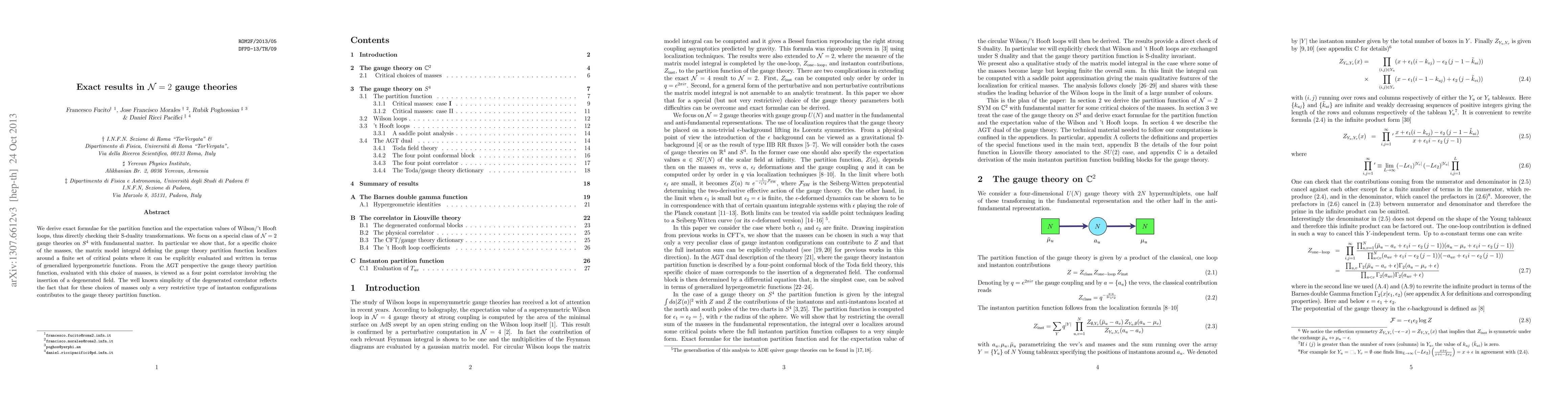 We derive exact formulae for the partition function and the expectation values of Wilson/'t Hooft loops, thus directly checking their S-duality transformations. We focus on a special class of N=2 gauge theories on S^4 with fundamental matter. In particular we show that, for a specific choice of the masses, the matrix model integral defining the gauge theory partition function localizes around a finite set of critical points where it can be explicitly evaluated and written in terms of generalized hypergeometric functions. From the AGT perspective the gauge theory partition function, evaluated with this choice of masses, is viewed as a four point correlator involving the insertion of a degenerated field. The well known simplicity of the degenerated correlator reflects the fact that for these choices of masses only a very restrictive type of instanton configurations contributes to the gauge theory partition function.