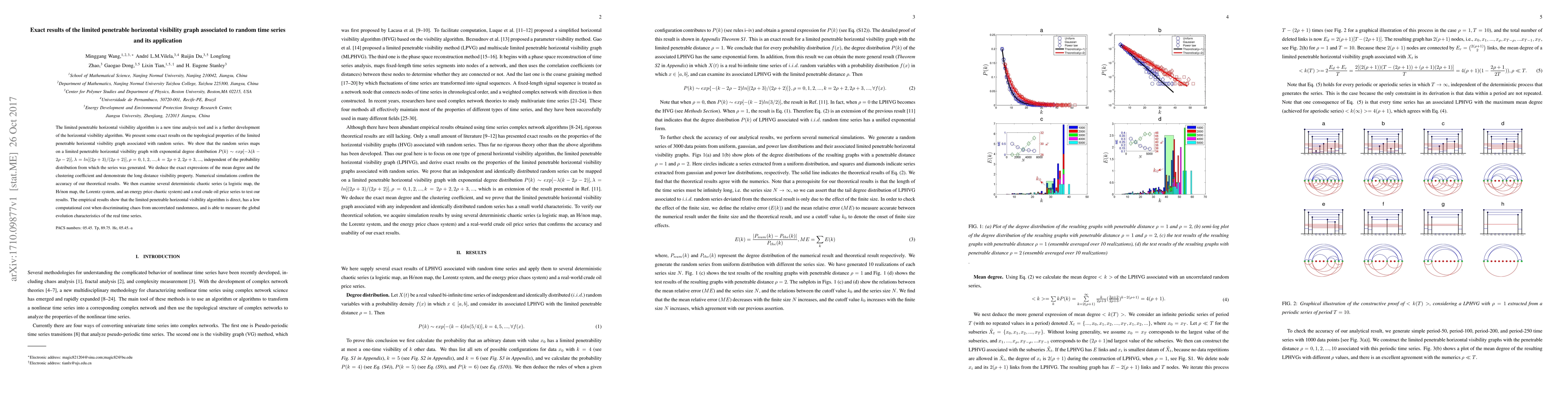This paper presents exact results on the topological properties of the limited penetrable horizontal visibility graph associated with random time series, showing an exponential degree distribution independent of the series' probability distribution. The method is applied to various deterministic chaotic and real crude oil price series, demonstrating its effectiveness in discriminating chaos from randomness and measuring time series evolution.