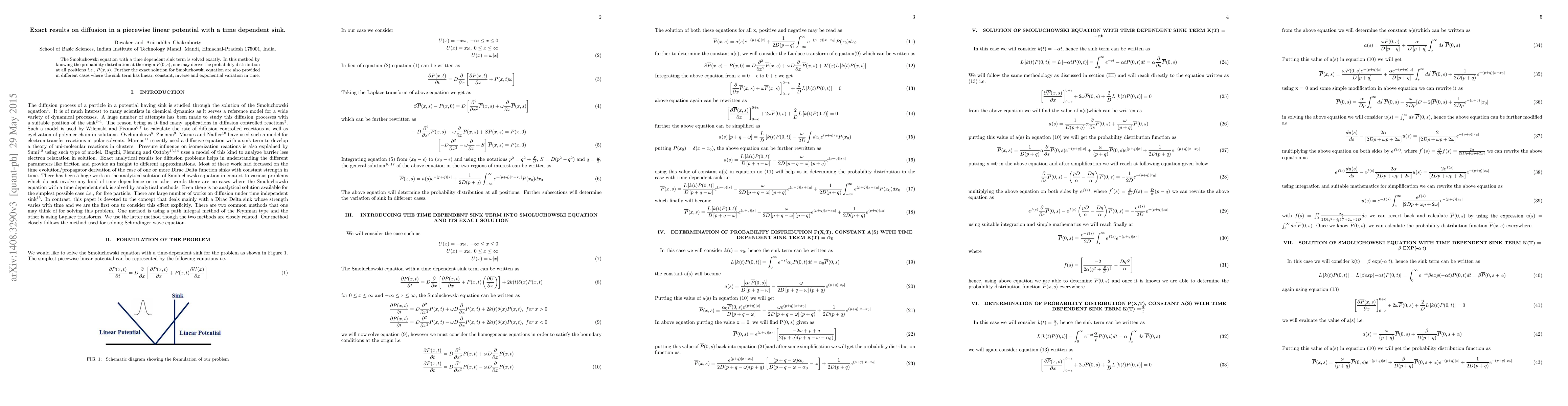 This paper presents an exact solution to the Smoluchowski equation with a time-dependent sink term, providing the probability distribution at any position P(x,s) given the initial distribution P(0,s). It also covers various scenarios for the sink term's temporal variation: linear, constant, inverse, and exponential.