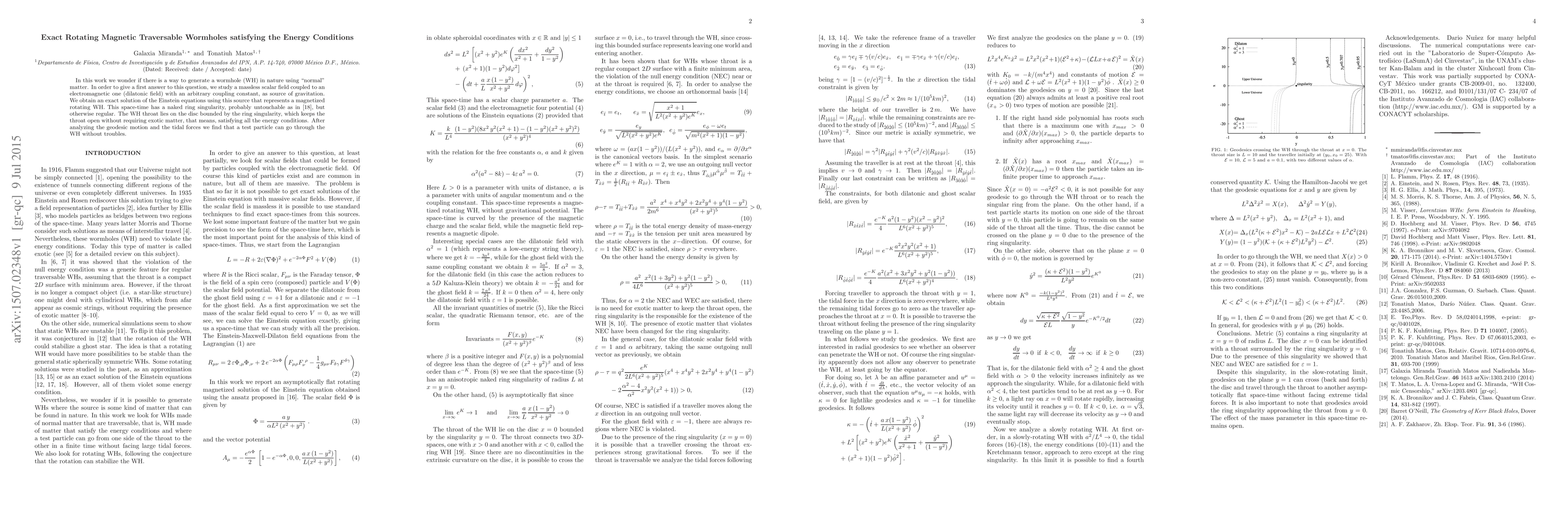 In this work we wonder if there is a way to generate a wormhole (WH) in nature using "normal" matter. In order to give a first answer to this question, we study a massless scalar field coupled to an electromagnetic one (dilatonic field) with an arbitrary coupling constant, as source of gravitation. We obtain an exact solution of the Einstein equations using this source that represents a magnetized rotating WH. This space-time has a naked ring singularity, probably untouchable as in \cite{Matos:2012gj}, but otherwise regular. The WH throat lies on the disc bounded by the ring singularity, which keeps the throat open without requiring exotic matter, that means, satisfying all the energy conditions. After analyzing the geodesic motion and the tidal forces we find that a test particle can go through the WH without troubles.