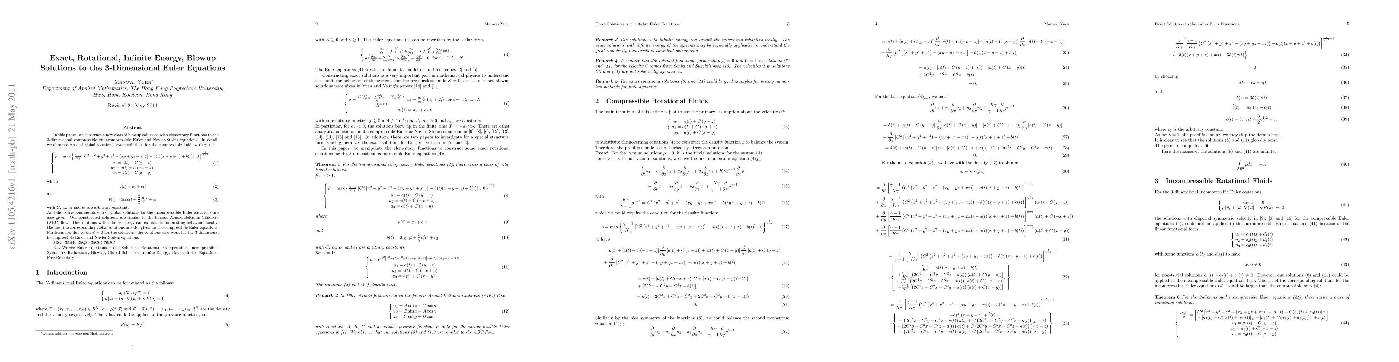 This paper constructs a new class of rotational, infinite energy, blowup solutions to the 3-dimensional Euler and Navier-Stokes equations using elementary functions. The solutions exhibit behaviors similar to the ABC flow and are globally rotational exact for compressible fluids.