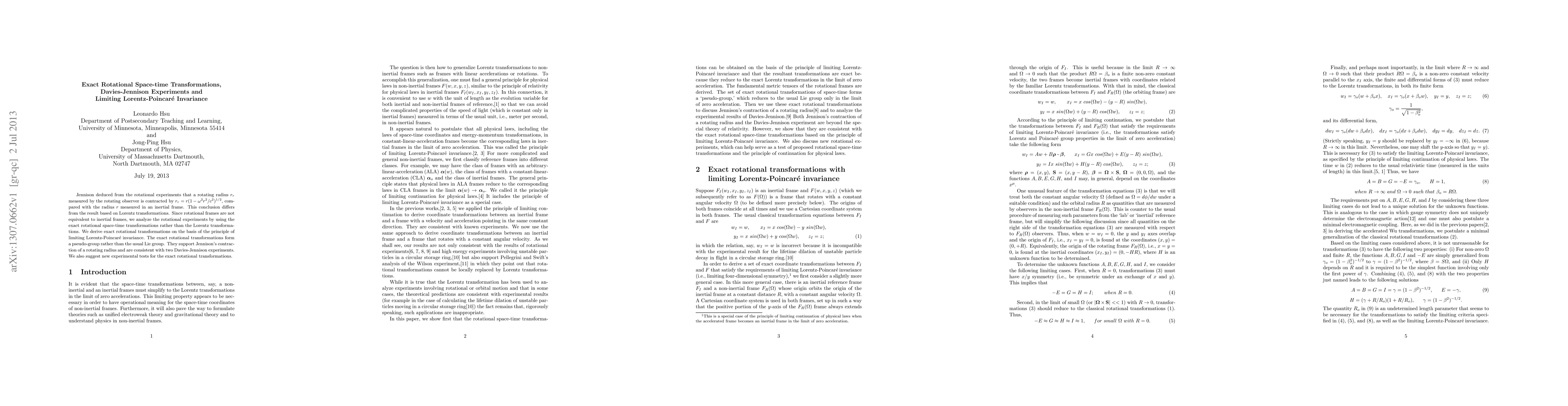 This paper proposes exact rotational space-time transformations that differ from Lorentz transformations, supporting Jennison's findings of radius contraction in rotating frames. These transformations are derived based on limiting Lorentz-Poincaré invariance and are consistent with Davies-Jennison experiments.