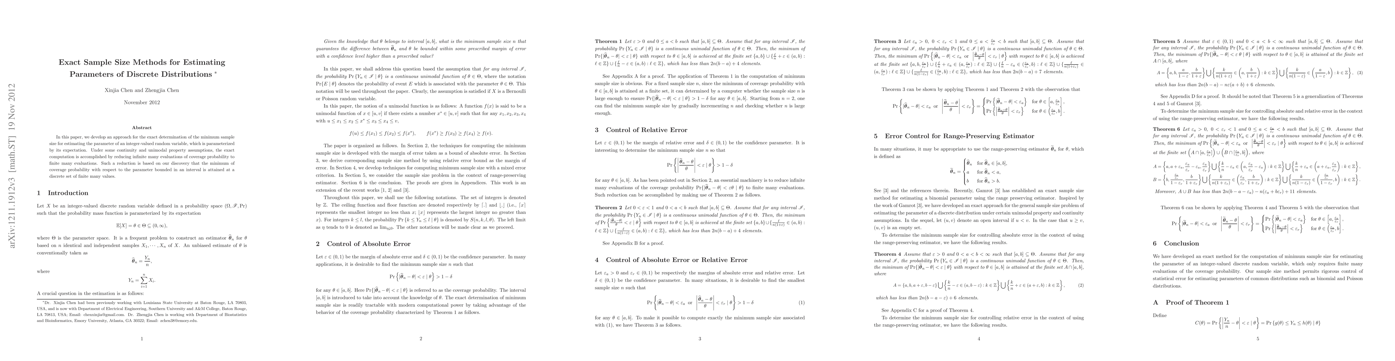Researchers developed a method to determine the exact minimum sample size needed to estimate parameters of discrete distributions, reducing infinite evaluations to finite ones.