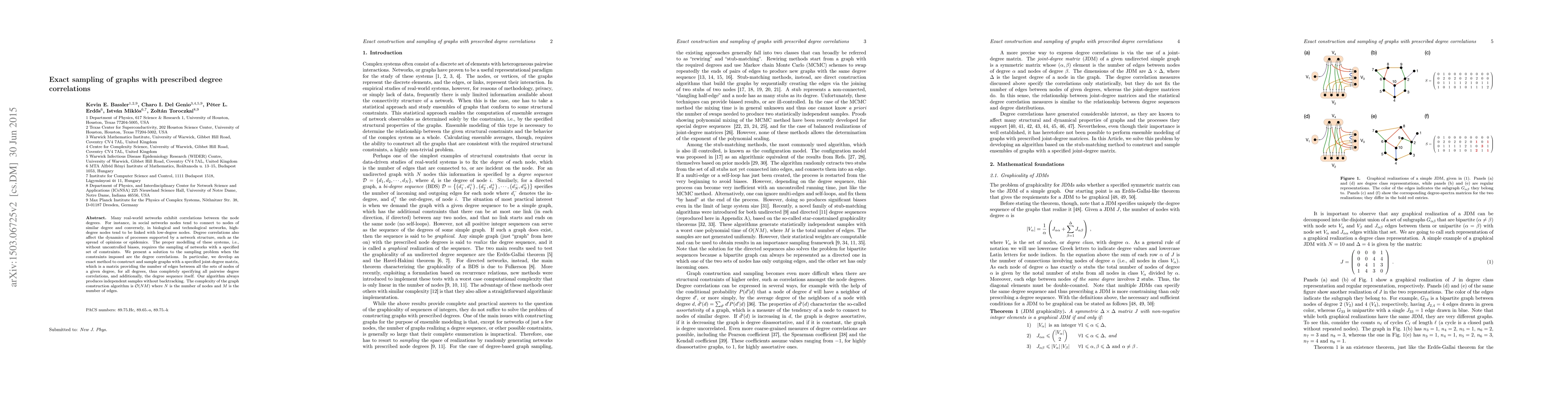 This paper presents an efficient algorithm for exact sampling of graphs that accurately reproduce specified degree correlations, crucial for modeling real-world networks where nodes of similar or dissimilar degrees connect. The method constructs graphs that match a given joint-degree matrix and degree sequence, ensuring unbiased network dynamics simulations.
