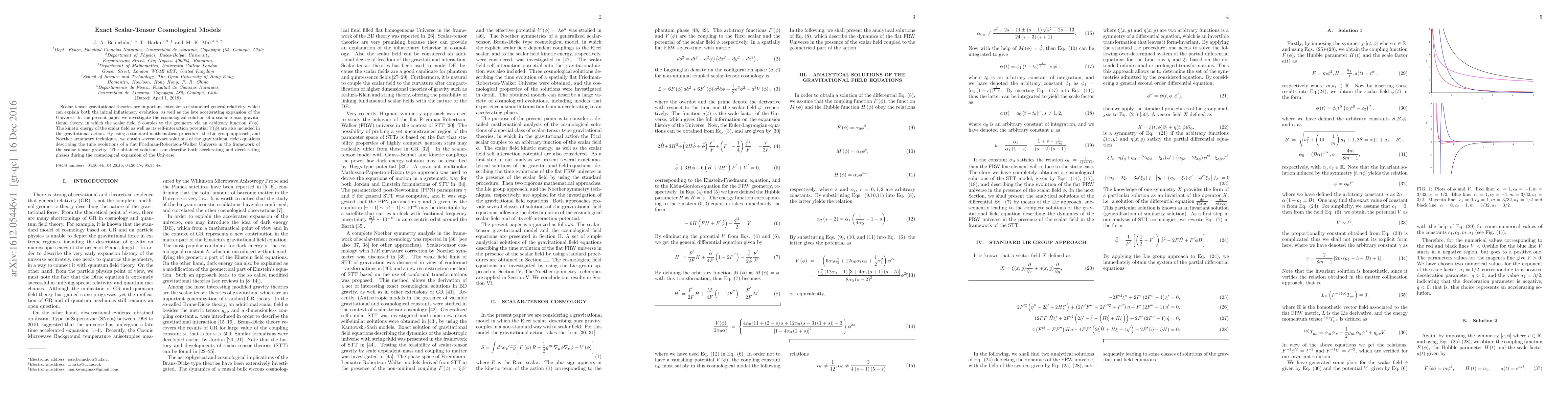 This paper explores exact solutions for scalar-tensor gravitational theories, which extend general relativity, using the Lie group approach and Noether symmetry techniques. It provides exact cosmological models describing the time evolution of a flat Friedmann-Robertson-Walker Universe, capable of explaining both inflationary and accelerating expansion phases.
