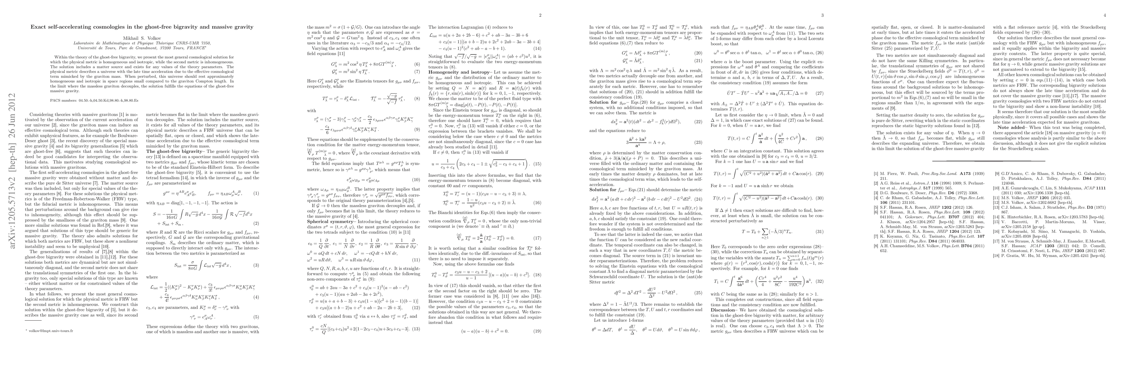 Within the theory of the ghost-free bigravity, we present the most general cosmological solution for which the physical metric is homogeneous and isotropic, while the second metric is inhomogeneous. The solution includes a matter source and exists for any values of the theory parameters. The physical metric describes a universe with the late time acceleration due to the effective cosmological term mimicked by the graviton mass. When perturbed, this universe should rest approximately homogeneous and isotropic in space regions small compared to the graviton Compton length. In the limit where the massless graviton decouples, the solution fulfills the equations of the ghost-free massive gravity.