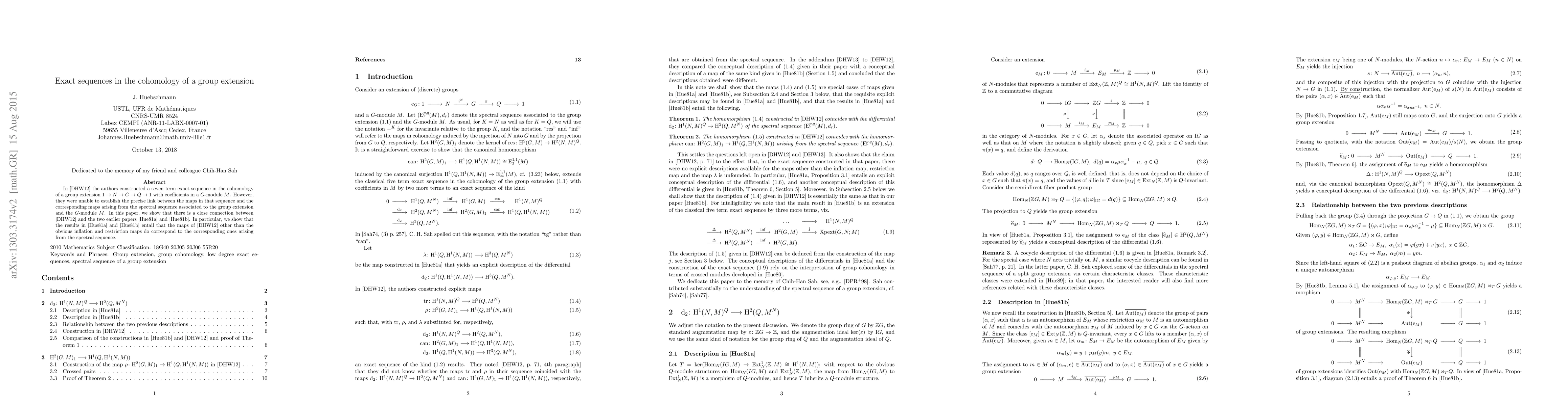 In [J. of Alg. 369: 70-95, 2012], the authors constructed a seven term exact sequence in the cohomology of a group extension G of a normal subgroup N by a quotient group Q with coefficients in a G-module M. However, they were unable to establish the precise link between the maps in that sequence and the corresponding maps arising from the spectral sequence associated to the group extension and the G-module M. In this paper, we show that there is a close connection between [J. of Alg. 369: 70-95, 2012] and our two earlier papers [J. of Alg. 72: 296-334, 1981] and [J. Reine Angew. Math. 321: 150-172, 1981]. In particular, we show that the results in the two papers just quoted entail that the maps of [J. of Alg. 369: 70-95, 2012] other than the obvious inflation and restriction maps do correspond to the corresponding ones arising from the spectral sequence.