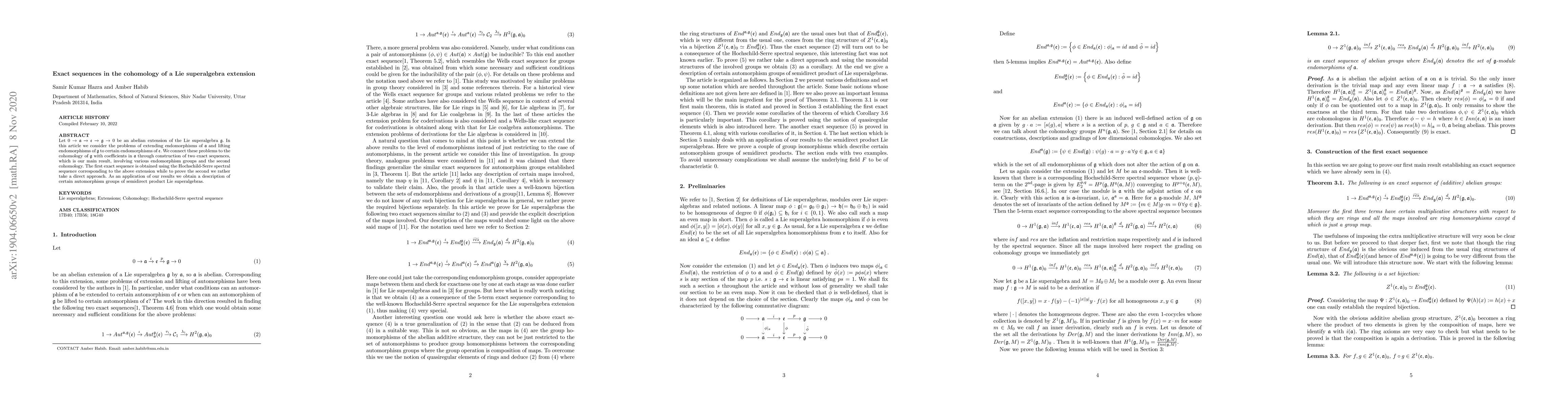 This paper constructs two exact sequences linking the cohomology of a Lie superalgebra $\mathfrak{g}$ with extensions of $\mathfrak{g}$ and explores the lifting of endomorphisms. The results provide descriptions of automorphism groups of semidirect product Lie superalgebras.