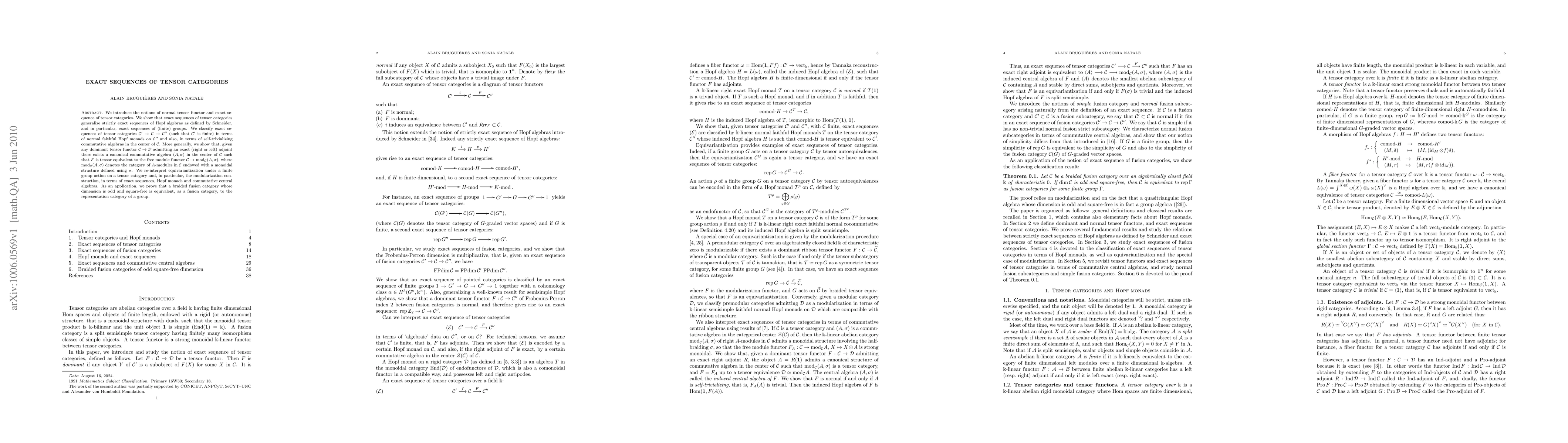 The paper establishes a deep connection between normal tensor functors, exact sequences, Hopf monads, and commutative central algebras, providing a novel classification and interpretation of exact sequences in tensor categories.