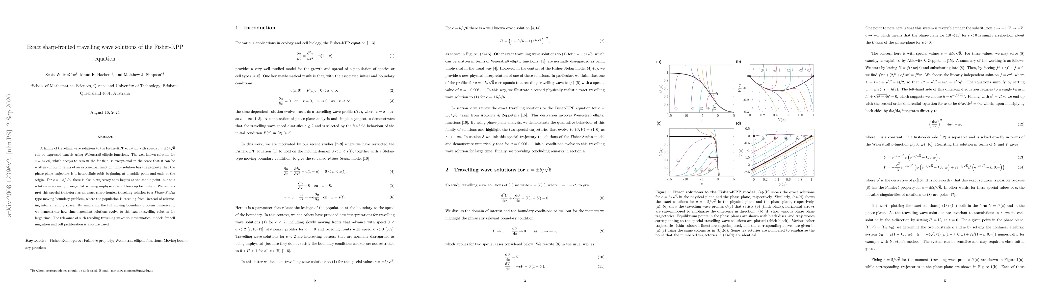 This work provides new insights into the interpretation of exact travelling wave solutions of the Fisher-KPP model, which is crucial for understanding cell migration and proliferation in biological contexts.