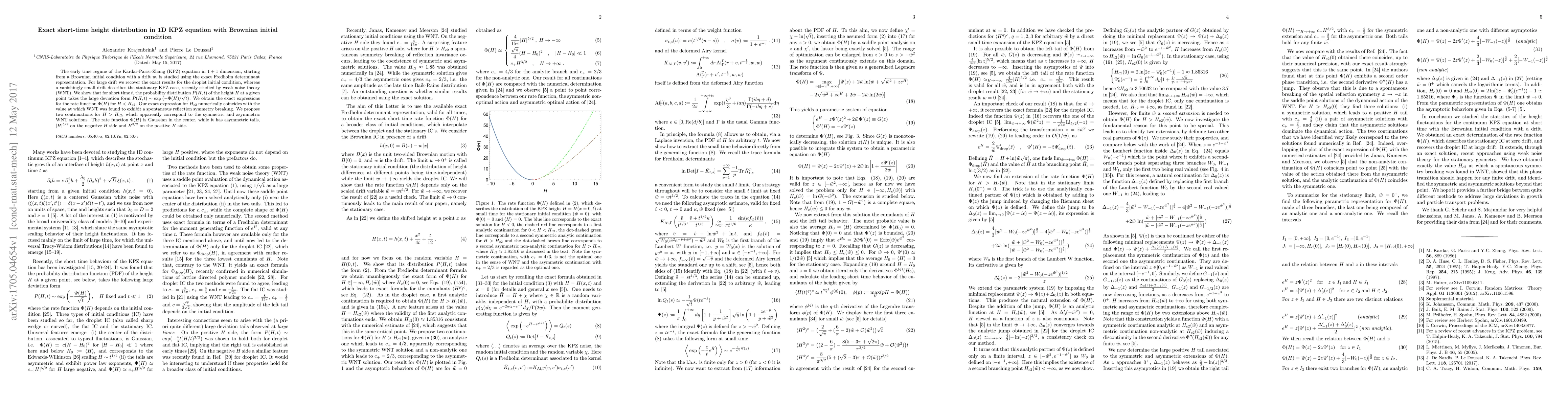 deviation form $P(H,t) \sim \exp{\left(-\Phi(H)/\sqrt{t} \right)}$. We obtain