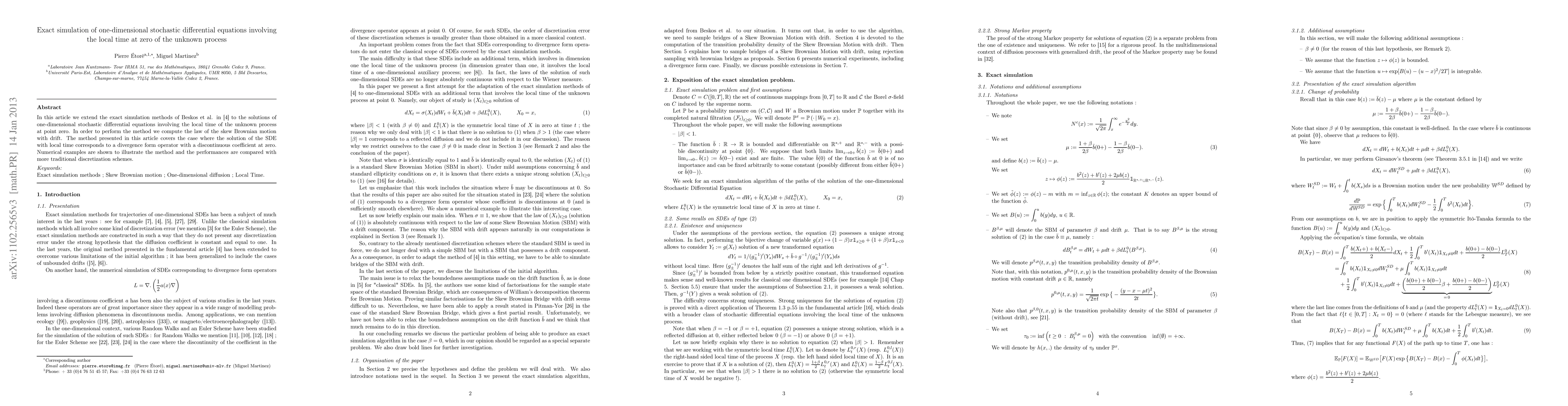 Researchers extend exact simulation methods for 1D stochastic differential equations involving local time at zero, covering cases with divergent coefficients, and compare performances to traditional discretization schemes.