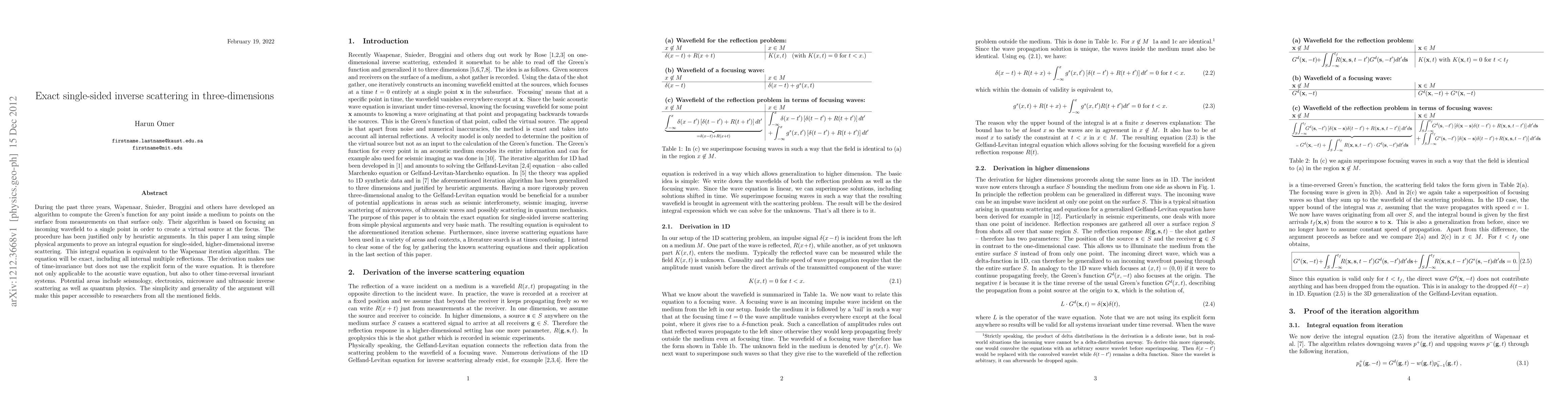 Researchers have developed an exact equation for single-sided inverse scattering in three dimensions, using simple physical arguments to justify the method. This breakthrough has implications for various fields such as seismology, electronics, and quantum physics.
