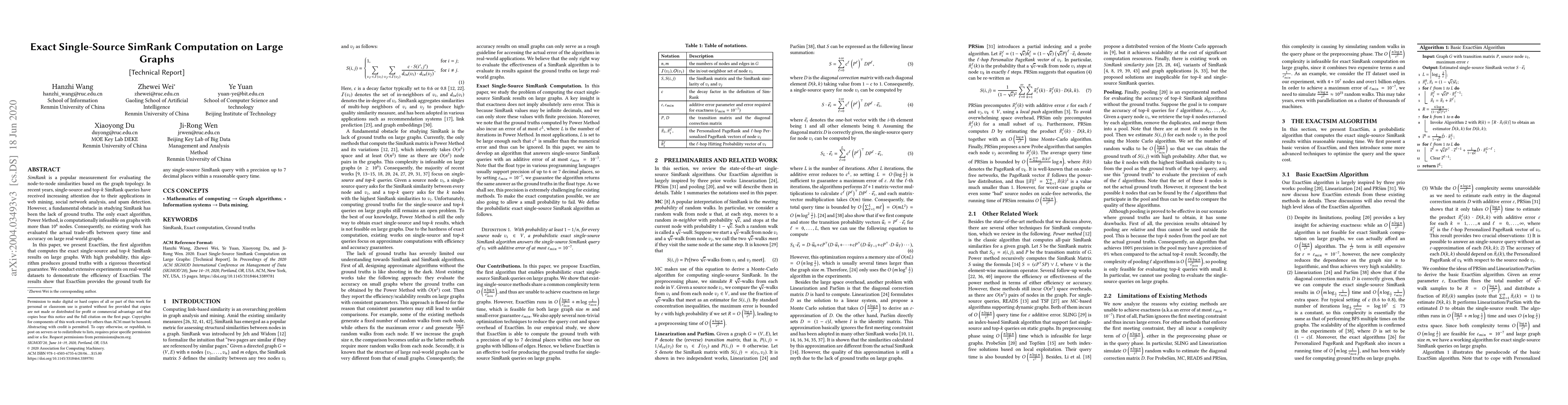 This paper introduces ExactSim, the first algorithm capable of computing exact single-source and top-$k$ SimRank results on large graphs, providing rigorous theoretical guarantees and demonstrating efficiency through experiments on real-world datasets. The algorithm achieves high precision within a reasonable query time, addressing the computational infeasibility of previous methods.