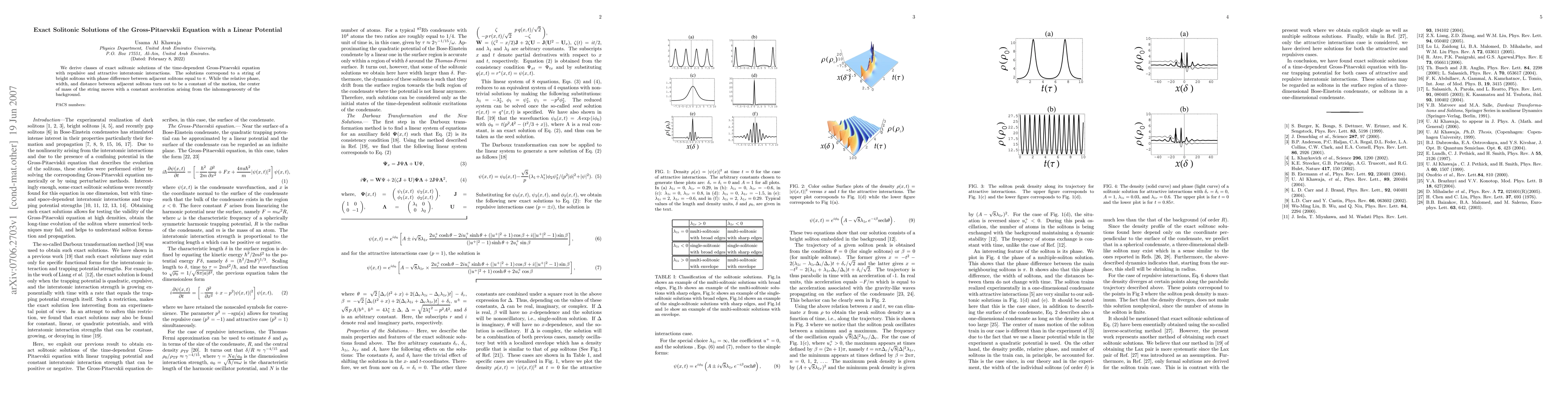 Researchers derived exact solitonic solutions for the Gross-Pitaevskii equation, revealing a string of bright solitons with constant relative phase, width, and distance between adjacent solitons, with the center of mass accelerating due to inhomogeneous background.