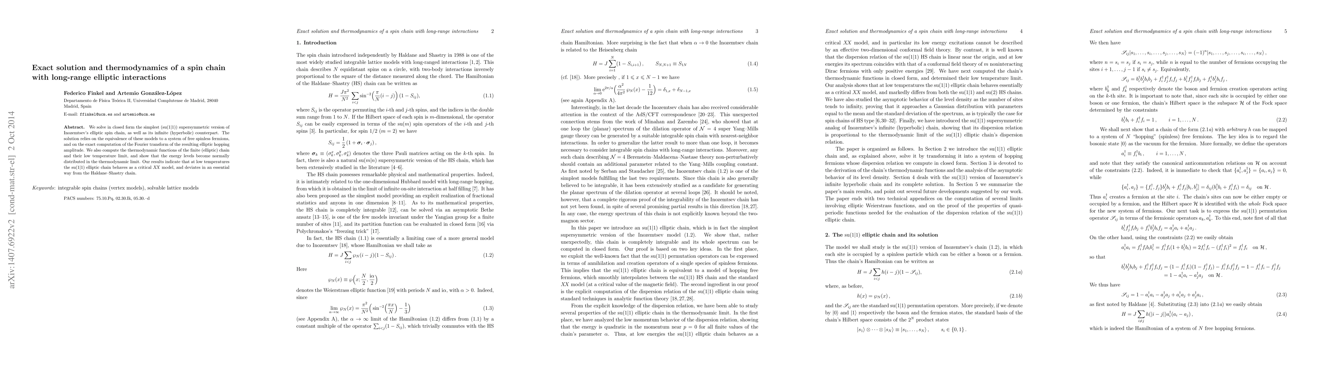 Researchers solved a spin chain model with long-range elliptic interactions, finding that at low temperatures it behaves like a critical XX model, deviating from the Haldane-Shastry chain.