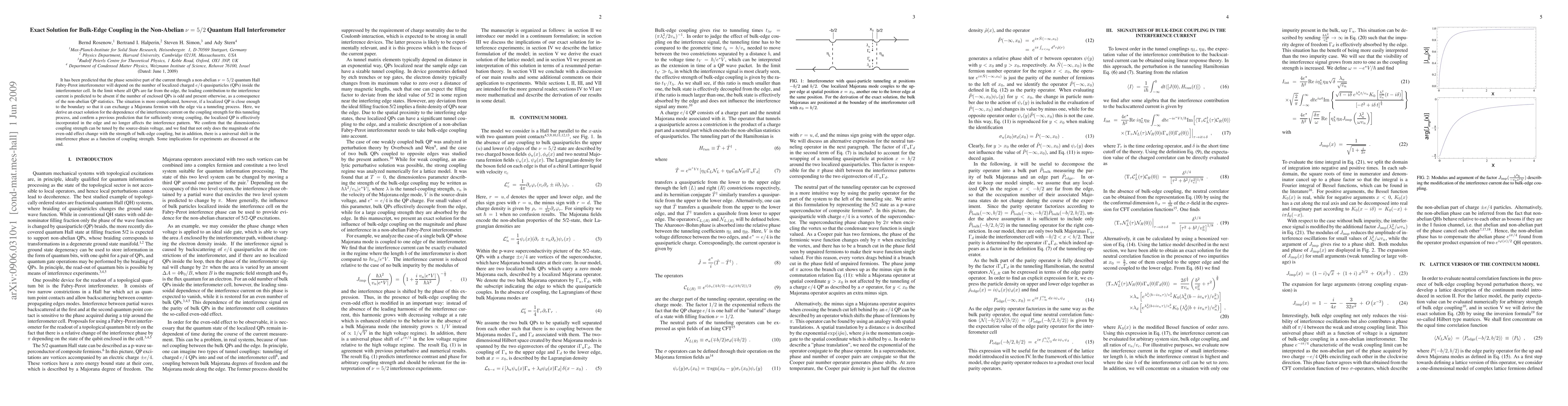 This research provides an exact solution for the bulk-edge coupling in a non-Abelian u03bc=5/2 quantum Hall interferometer, confirming that the interference current's dependence on localized charged e/4 quasiparticles is influenced by the coupling strength. The study reveals that with strong coupling, a localized quasiparticle is effectively integrated into the edge, altering the interference pattern and causing a universal phase shift.