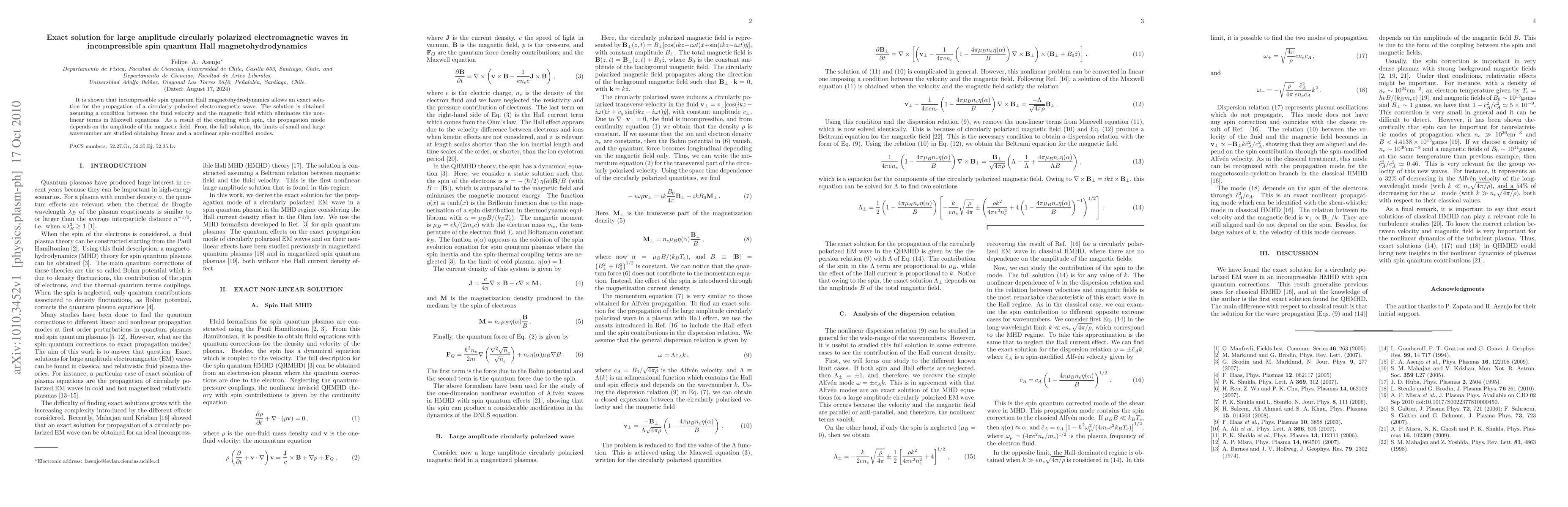 It is shown that incompressible spin quantum Hall magnetohydrodynamics allows an exact solution for the propagation of a circularly polarized electromagnetic wave. The solution is obtained assuming a condition between the fluid velocity and the magnetic field which eliminates the nonlinear terms in Maxwell equations. As a result of the coupling with spin, the propagation mode depends on the amplitude of the magnetic field. From the full solution, the limits of small and large wavenumber are studied obtaining linear and a nonlinear spin-modified modes.