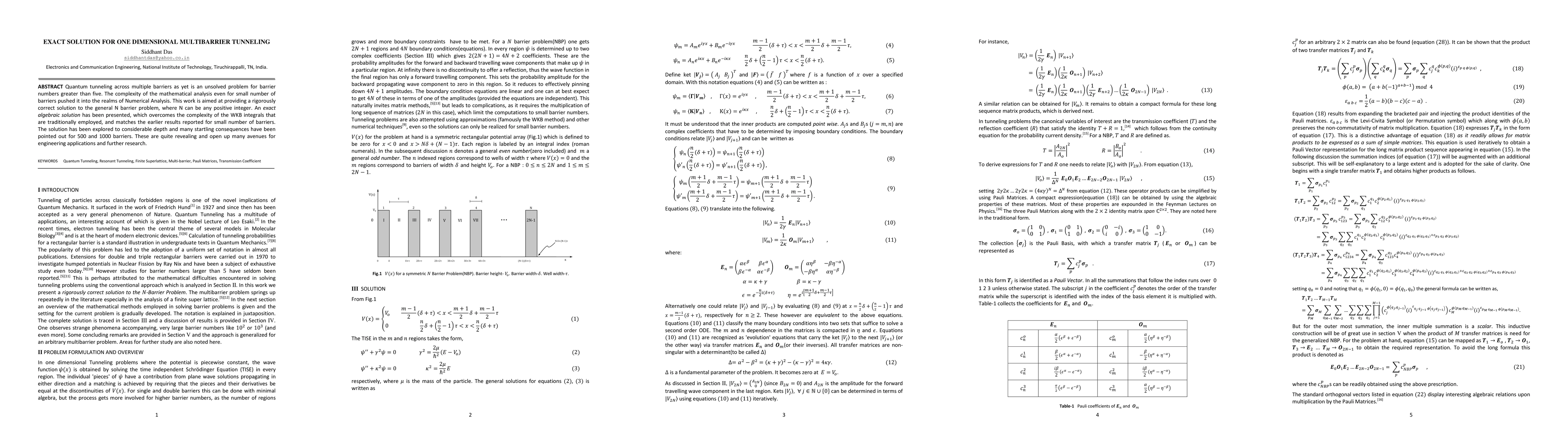 Quantum tunneling across multiple barriers as yet is an unsolved problem for barrier numbers greater than five. The complexity of the mathematical analysis even for small number of barriers pushed it into the realms of Numerical Analysis. This work is aimed at providing a rigorously correct solution to the general N barrier problem, where N can be any positive integer. An exact algebraic solution has been presented, which overcomes the complexity of the WKB integrals that are traditionally employed, and matches the earlier results reported for small number of barriers. The solution has been explored to considerable depth and many startling consequences have been pointed out for 500 and 1000 barriers. These are quite revealing and open up many avenues for engineering applications and further research.