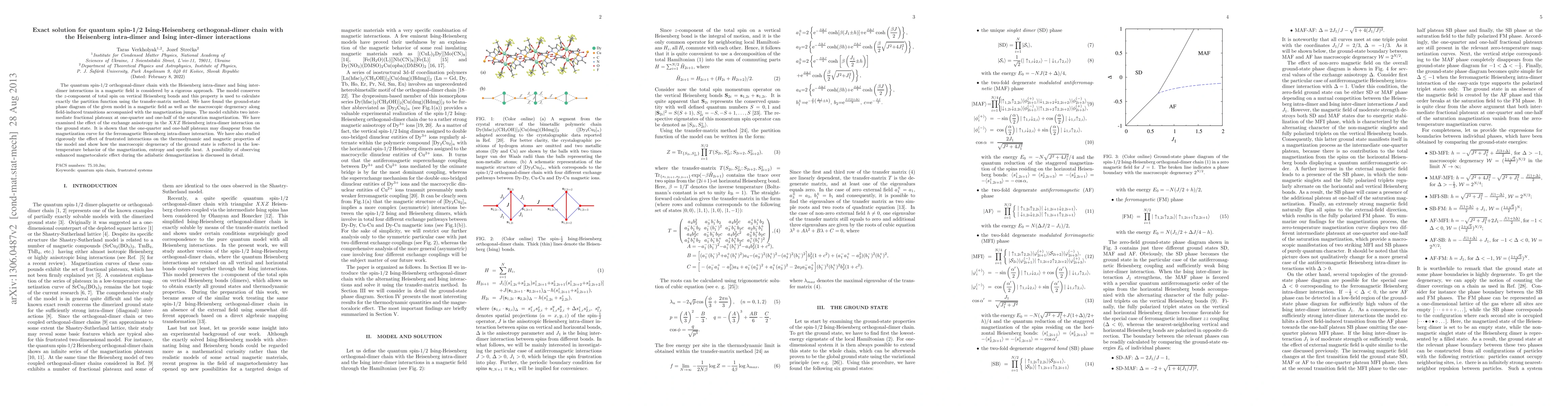 This research presents the exact solution for a quantum spin-1/2 orthogonal-dimer chain model featuring Heisenberg intra-dimer and Ising inter-dimer interactions in a magnetic field. The study reveals the ground-state phase diagram, macroscopic degeneracies, and magnetization plateaux, discussing the impact of frustrated interactions and exchange anisotropy on thermodynamic and magnetic properties.