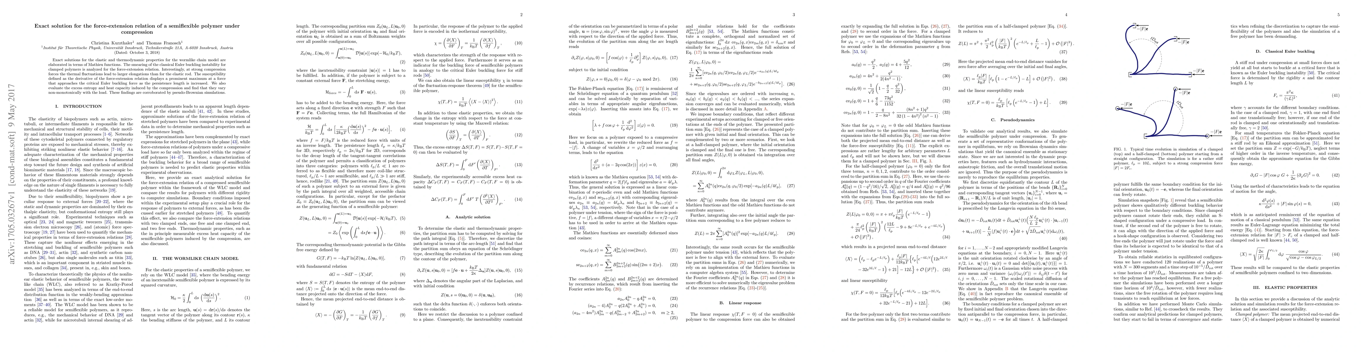 This paper presents exact solutions for the elastic properties of semiflexible polymer chains using Mathieu functions, revealing that strong compression forces can induce larger elongations due to thermal fluctuations. The study highlights a maximum in susceptibility near the critical Euler buckling force, and finds non-monotonic variations in excess entropy and heat capacity with load, validated by simulations.