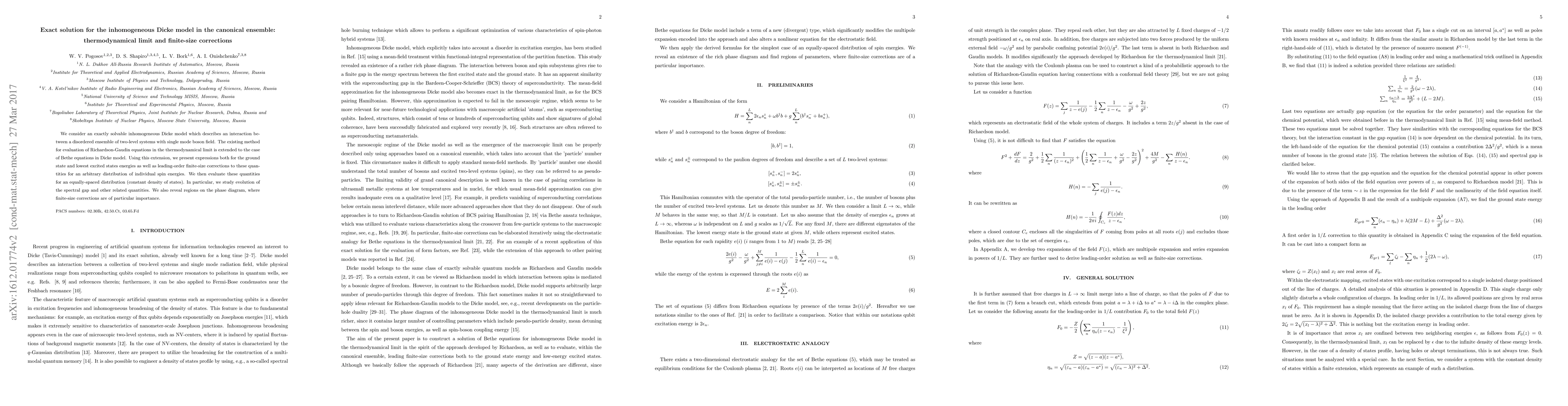 This paper presents an exact solution for the inhomogeneous Dicke model, extending the evaluation method to the thermodynamical limit and deriving finite-size corrections. It analyzes the spectral gap and phase diagram, highlighting the significance of finite-size corrections in specific regions.