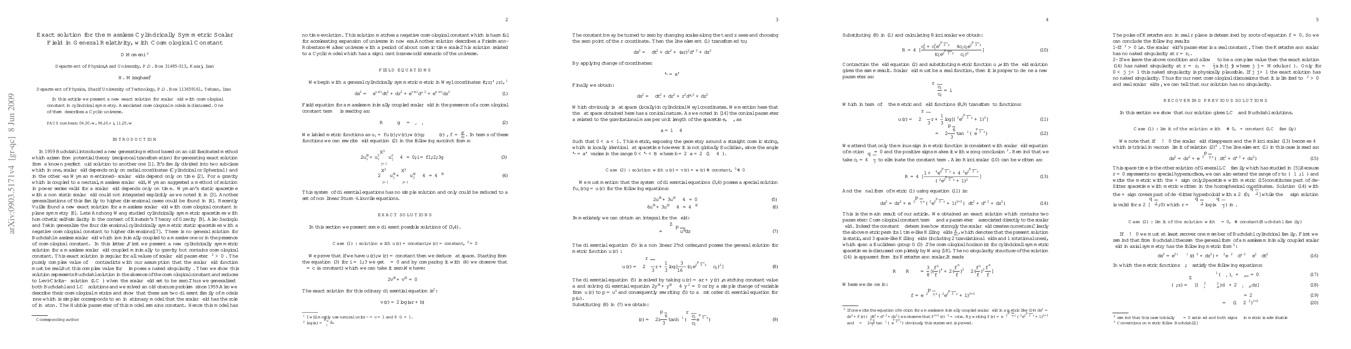 This paper introduces an exact solution for a massless, cylindrically symmetric scalar field in General Relativity with a cosmological constant, and explores associated cosmological models, including a model depicting a Cyclic universe.