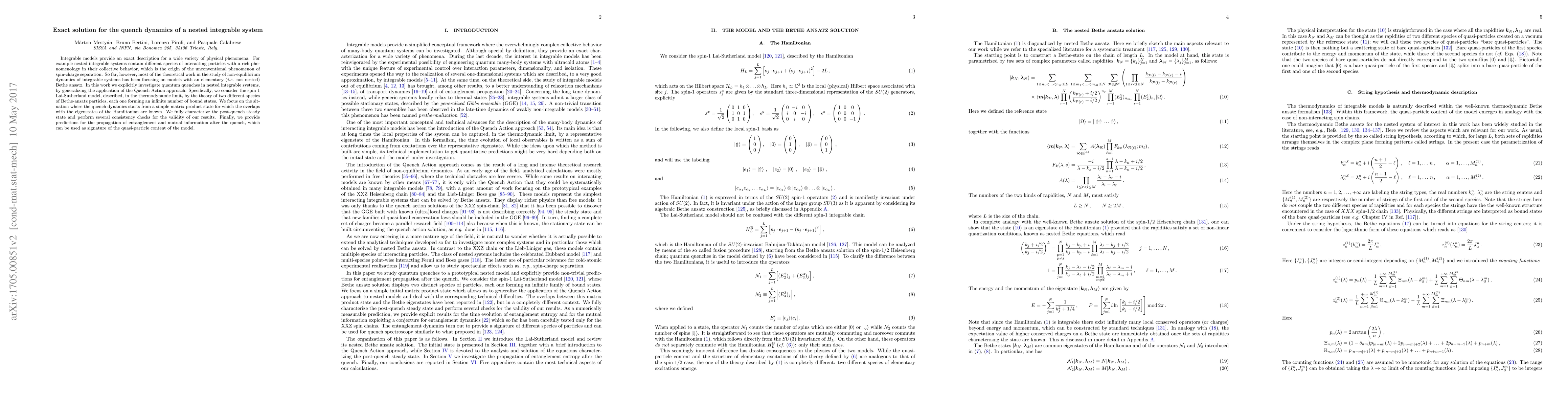 This paper presents an exact solution for the quench dynamics in nested integrable systems, specifically the spin-$1$ Lai-Sutherland model, using the Quench Action approach. It characterizes the post-quench steady state and predicts the propagation of entanglement and mutual information as signatures of quasi-particle content.