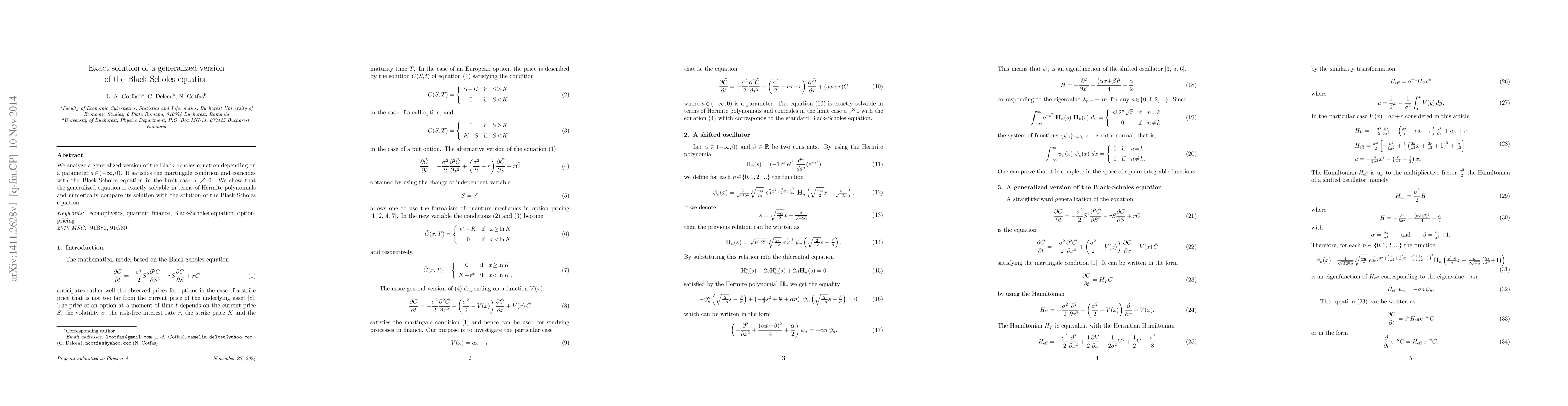 We analyze a generalized version of the Black-Scholes equation depending on a parameter $a\!\in \!(-\infty,0)$. It satisfies the martingale condition and coincides with the Black-Scholes equation in the limit case $a\nearrow 0$. We show that the generalized equation is exactly solvable in terms of Hermite polynomials and numerically compare its solution with the solution of the Black-Scholes equation.