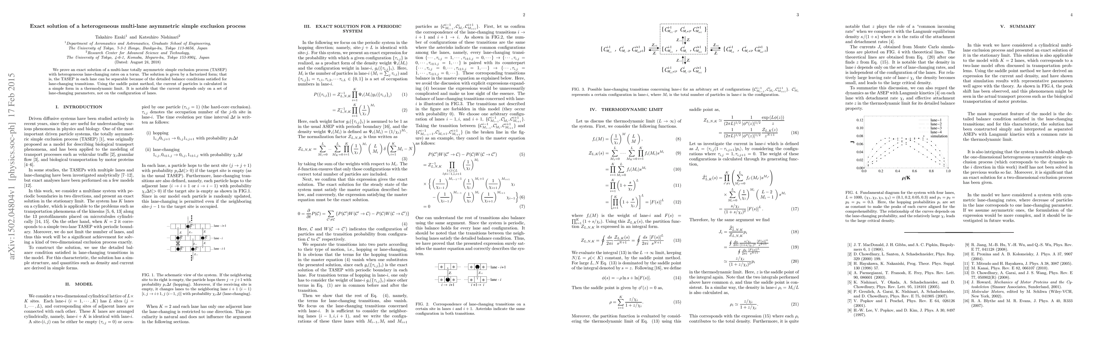 This paper provides an exact solution for a multi-lane asymmetric simple exclusion process with varying lane-changing rates, demonstrating separability due to detailed balance conditions. The particle current is derived in a simplified form using the saddle point method, showing dependence solely on lane-changing parameters.
