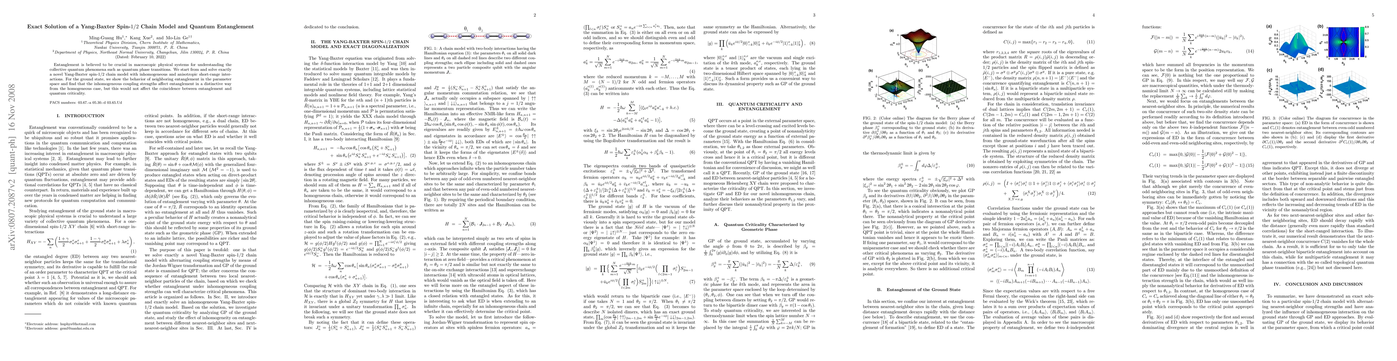 This research presents an exact solution for a unique Yang-Baxter spin-1/2 chain model with varying and direction-dependent interactions. The study reveals that these inhomogeneous coupling strengths uniquely influence neighboring entanglement in the ground state, while not altering the link between entanglement and quantum criticality.