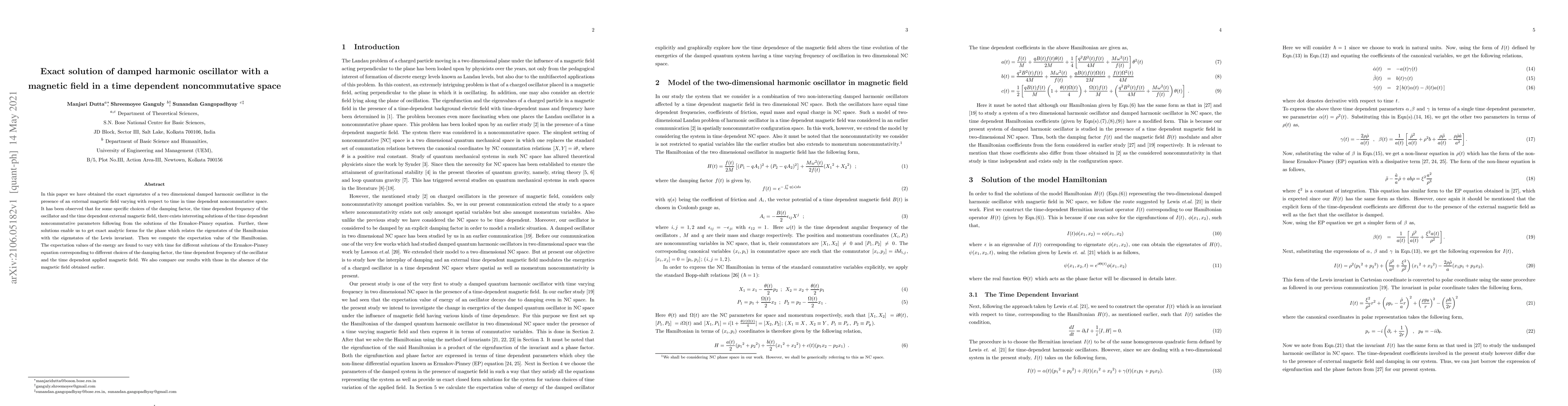 This paper provides exact eigenstates for a two-dimensional damped harmonic oscillator under a time-varying external magnetic field in a time-dependent noncommutative space, showing how specific parameter choices yield solutions from the Ermakov-Pinney equation and affect time-varying energy expectations. Comparisons are made with solutions from scenarios without a magnetic field.